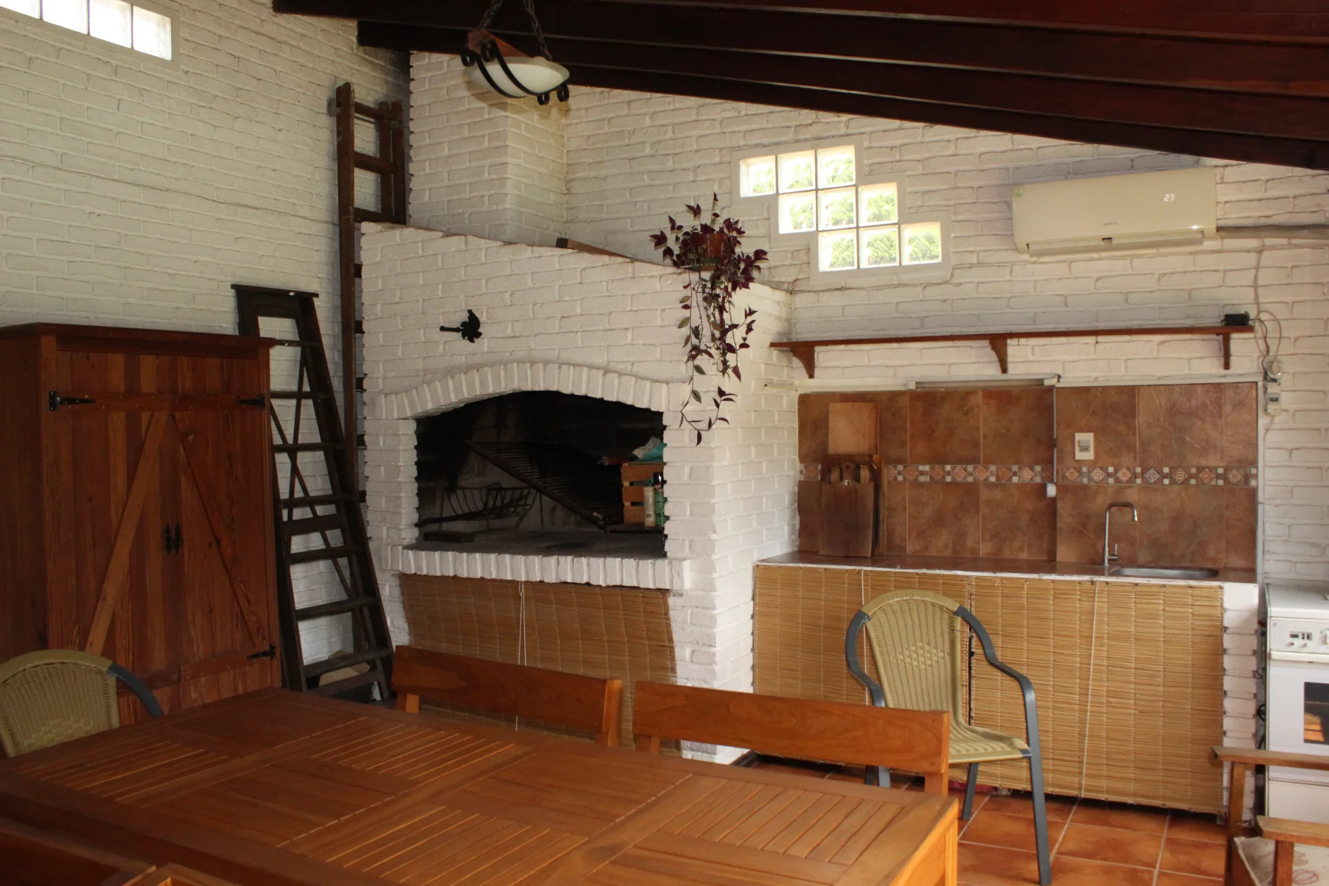 espacio, ideal para reuniones familiares, cuenta con parrillero, mesada, espacio para cocina y heladera. De