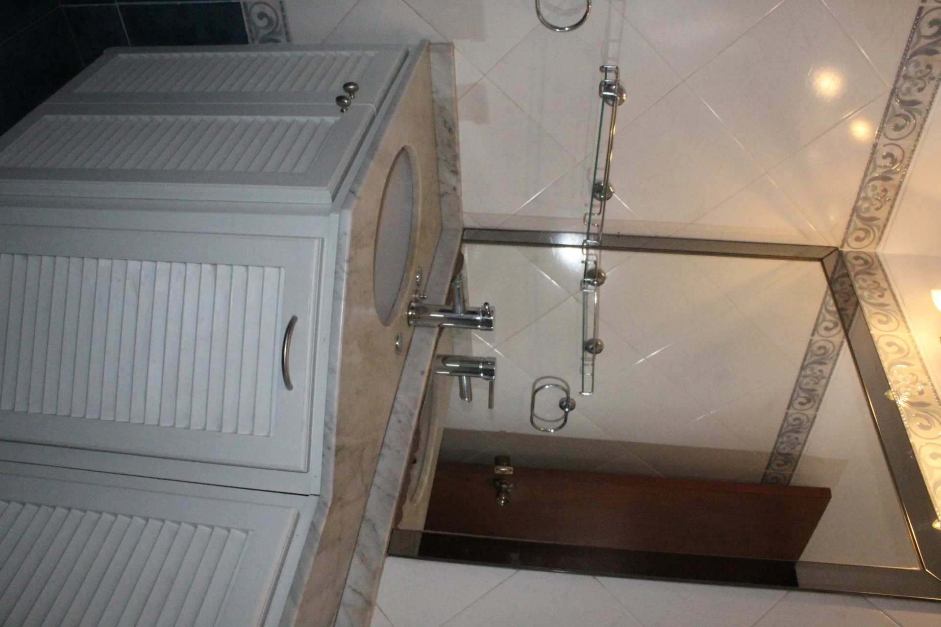 El baño está revestido de cerámica, tiene una cómoda bacha con placares bajo mesada, duchero con