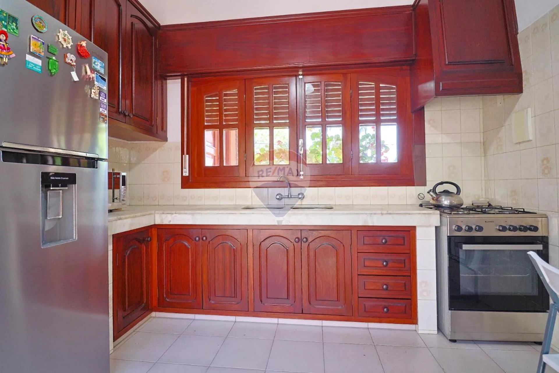 La cocina independiente tiene muebles aéreos y bajo mesada todos en cedro de muy buena calidad, tanto la cocina como el living y el estudio se conectan con un patio interior y el parrillero formando un gran espacio para reuniones.