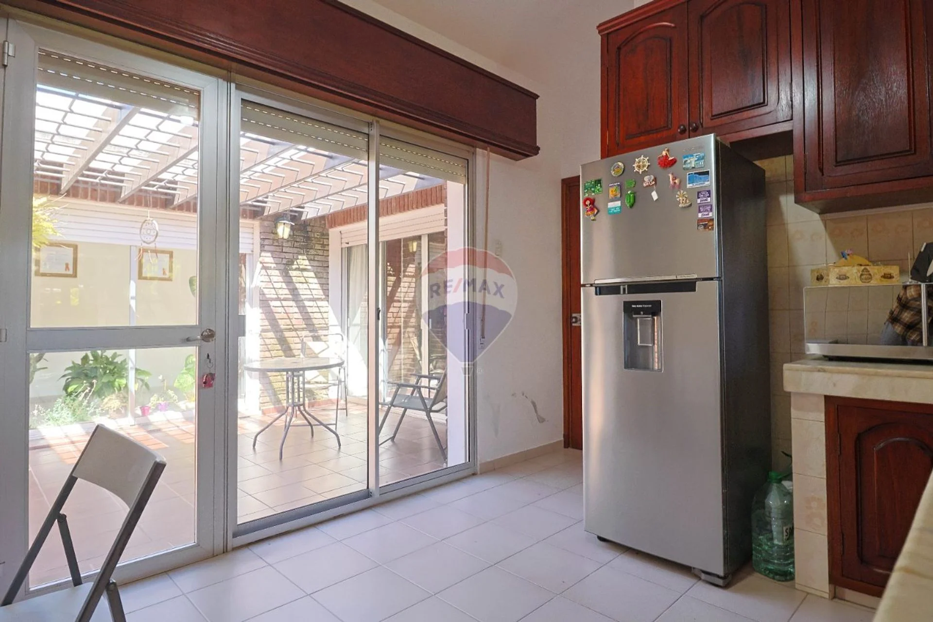 El patio es amplio y posee un garaje para dos autos, así como un parrillero.