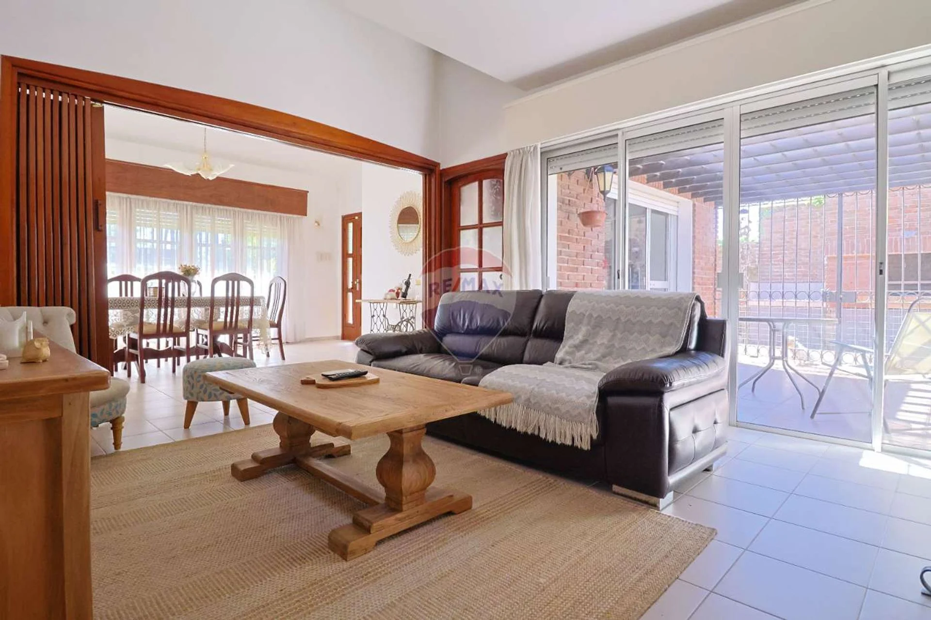 La misma cuenta al entrar con un espacio de comedor y living que están unidos pero se pueden separar por medio de una puerta plegable que los deja totalmente independientes, en el living hay una estufa a leña con su leñero y un mueble de guardado.