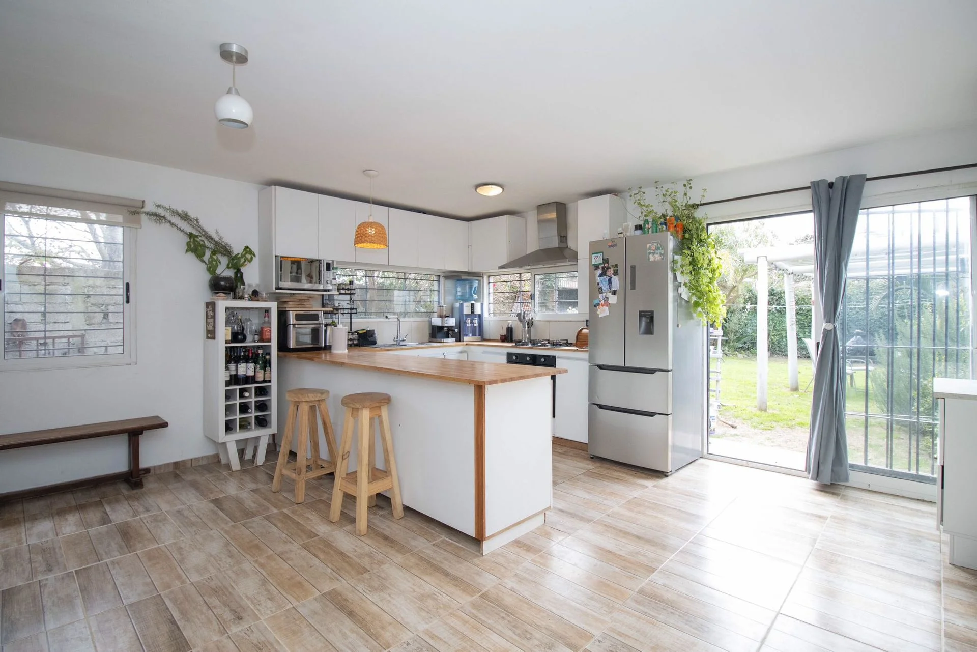 La cocina integrada al comedor y living cuenta con una práctica estufa a leña. El amplio fondo dispone de un cómodo parrillero. La propiedad se entrega en excelente estado , lista para mudarse.