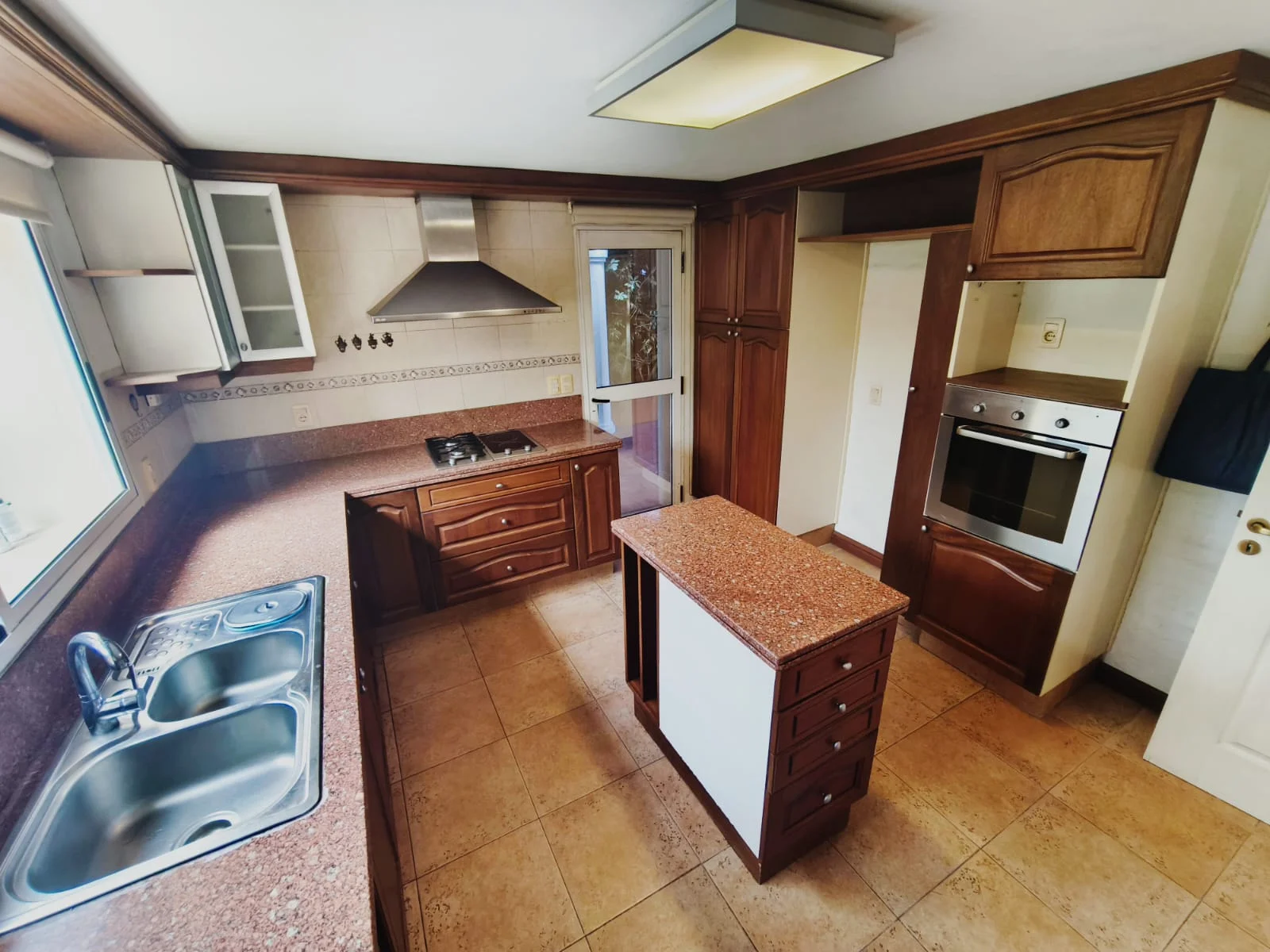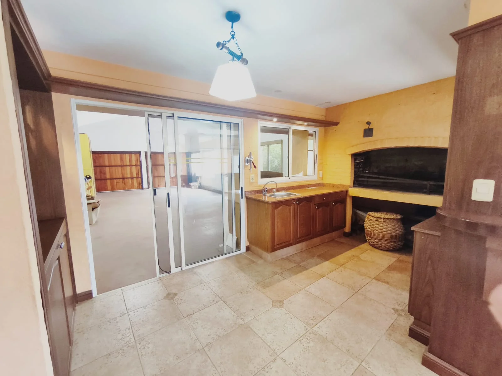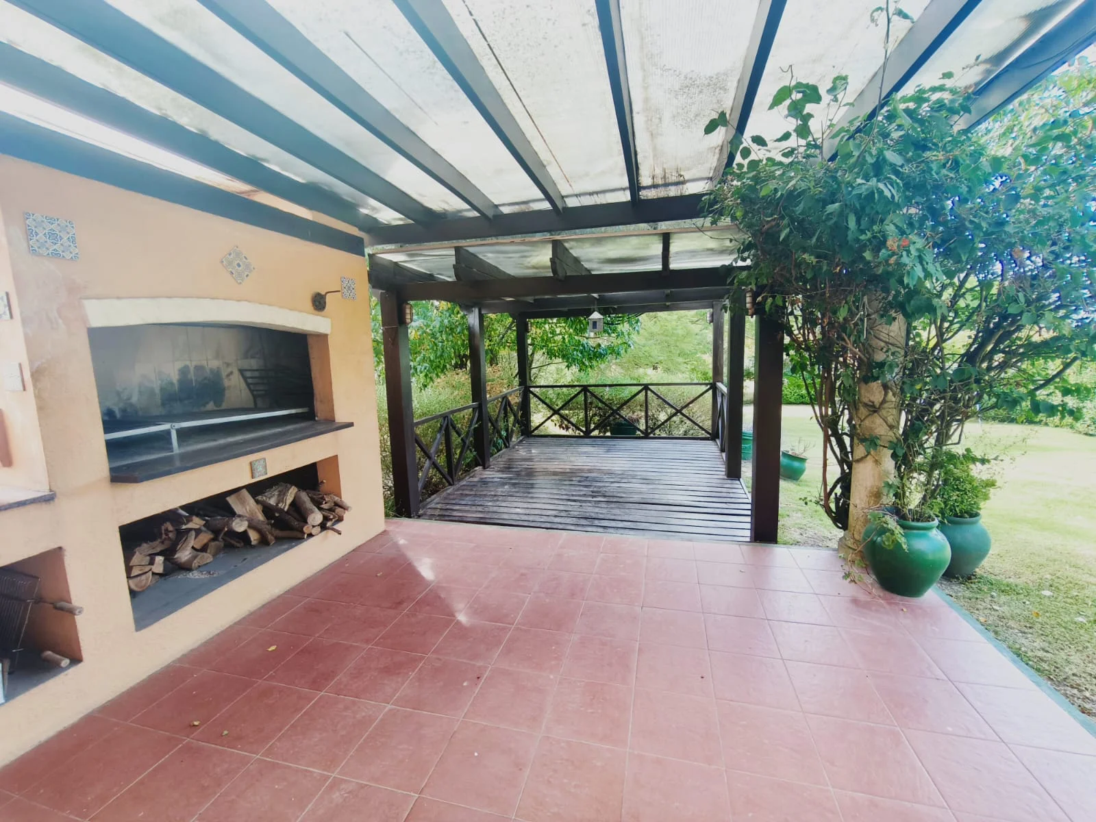 Destaca una amplia barbacoa cerrada conectada directamente a la casa, con parrillero propio y baño social.
