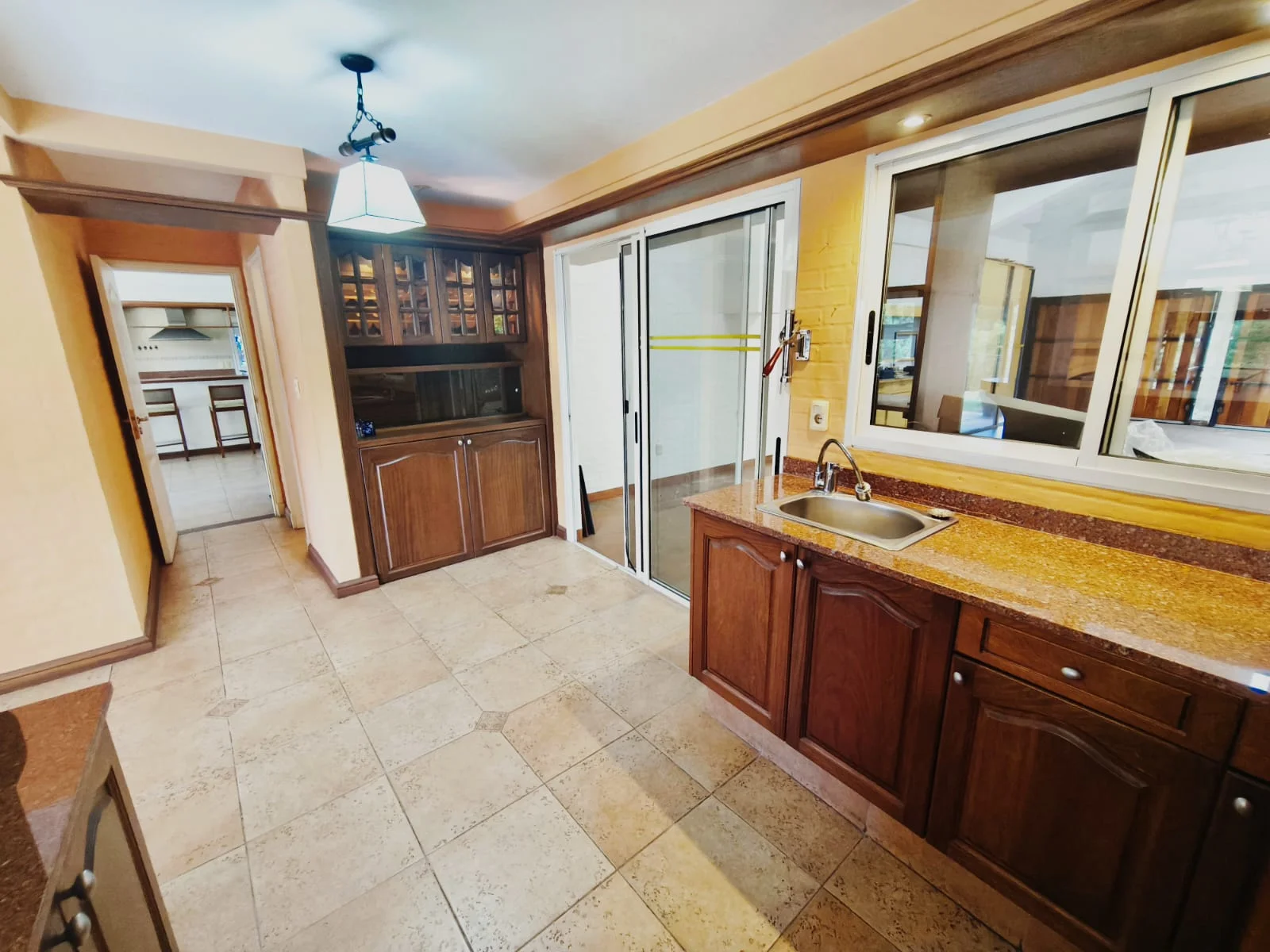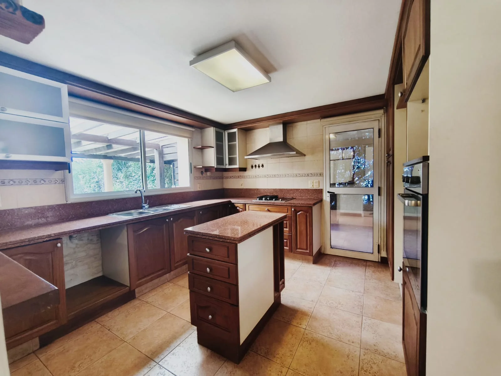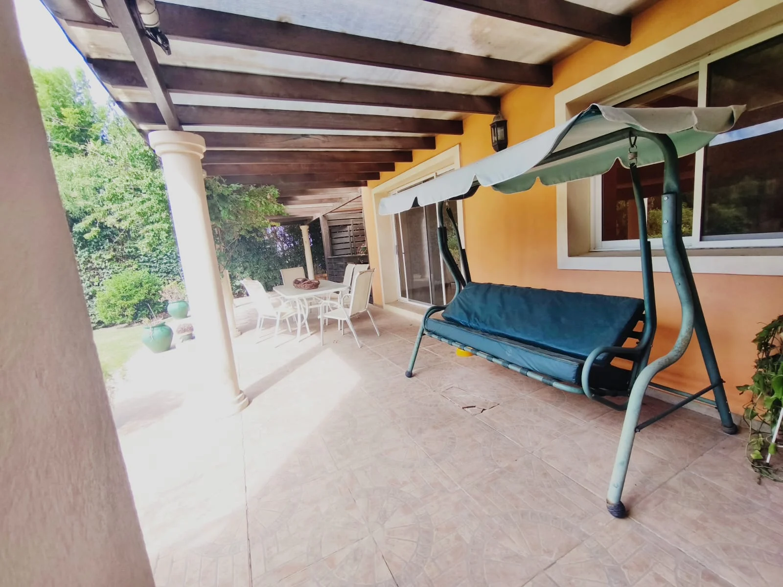 Destaca una amplia barbacoa cerrada conectada directamente a la casa, con parrillero propio y baño social.