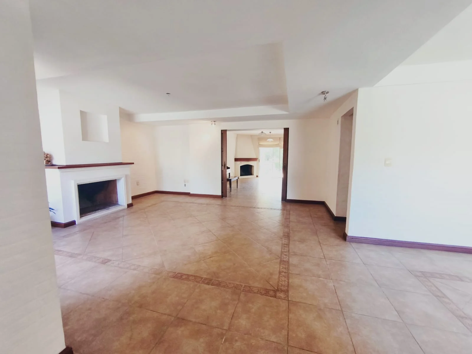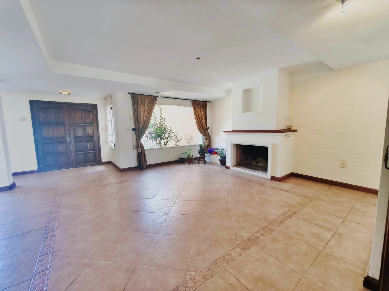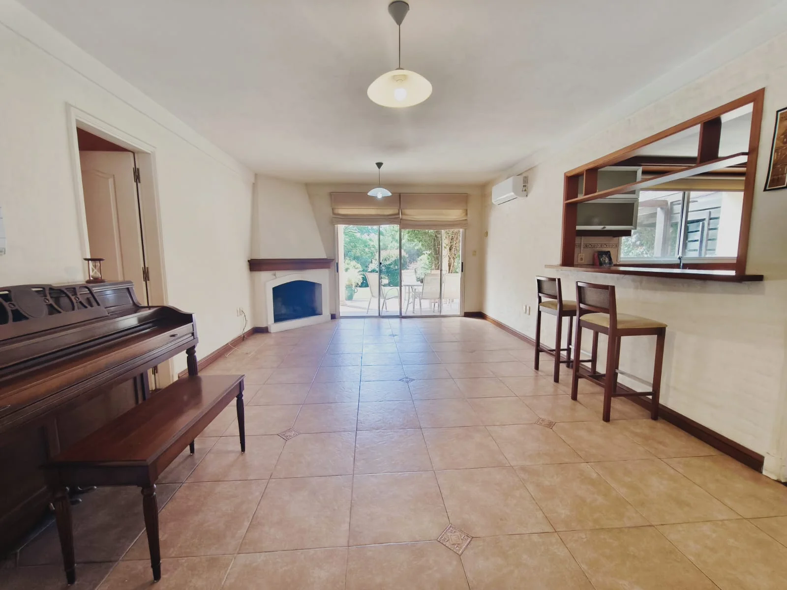 Cuenta con un living comedor de generosas dimensiones con amplios ventanales al jardín y estufa a leña.