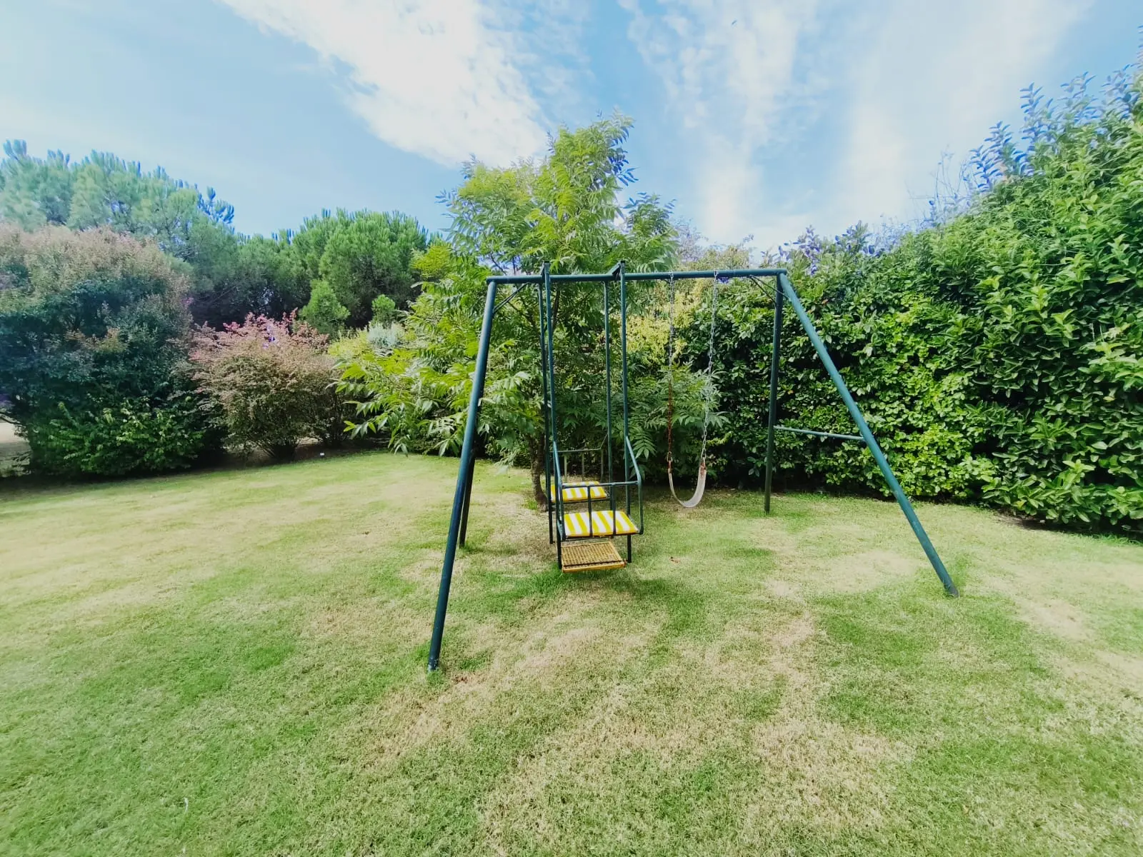 Amplio fondo verde totalmente cerrado con vegetación perimetral que asegura total privacidad.