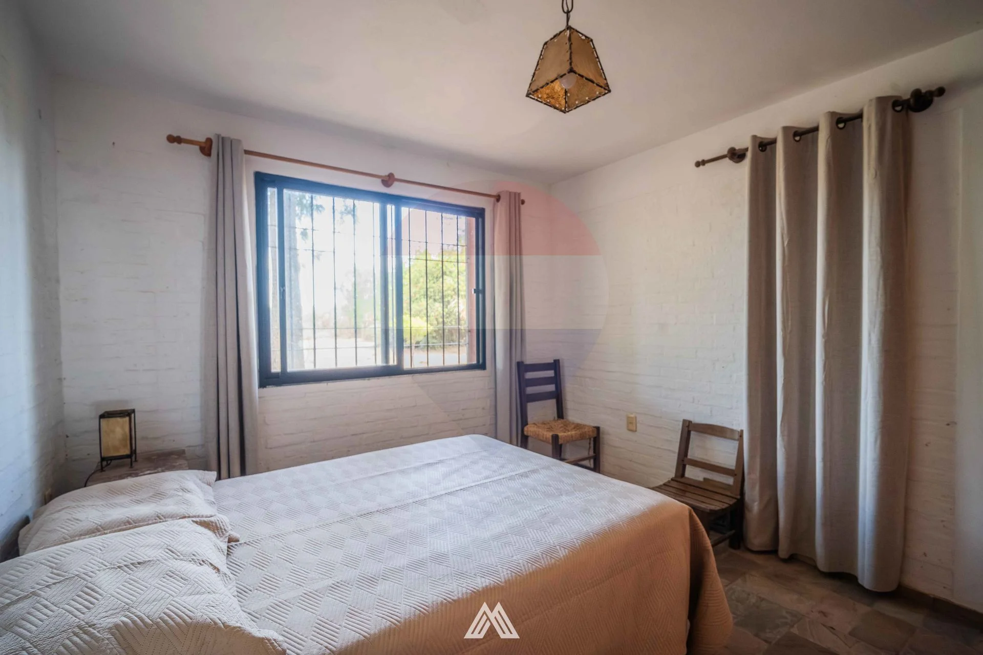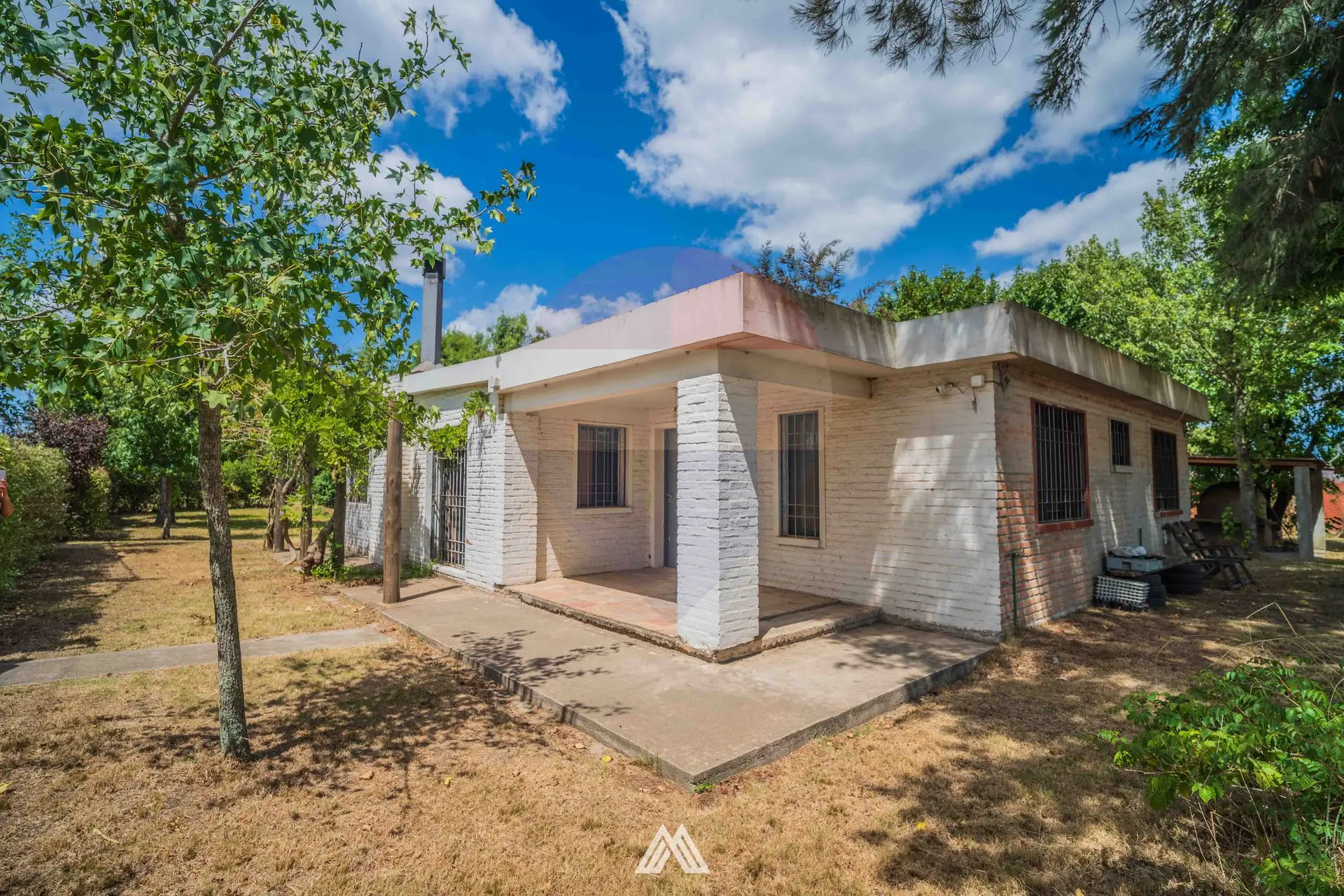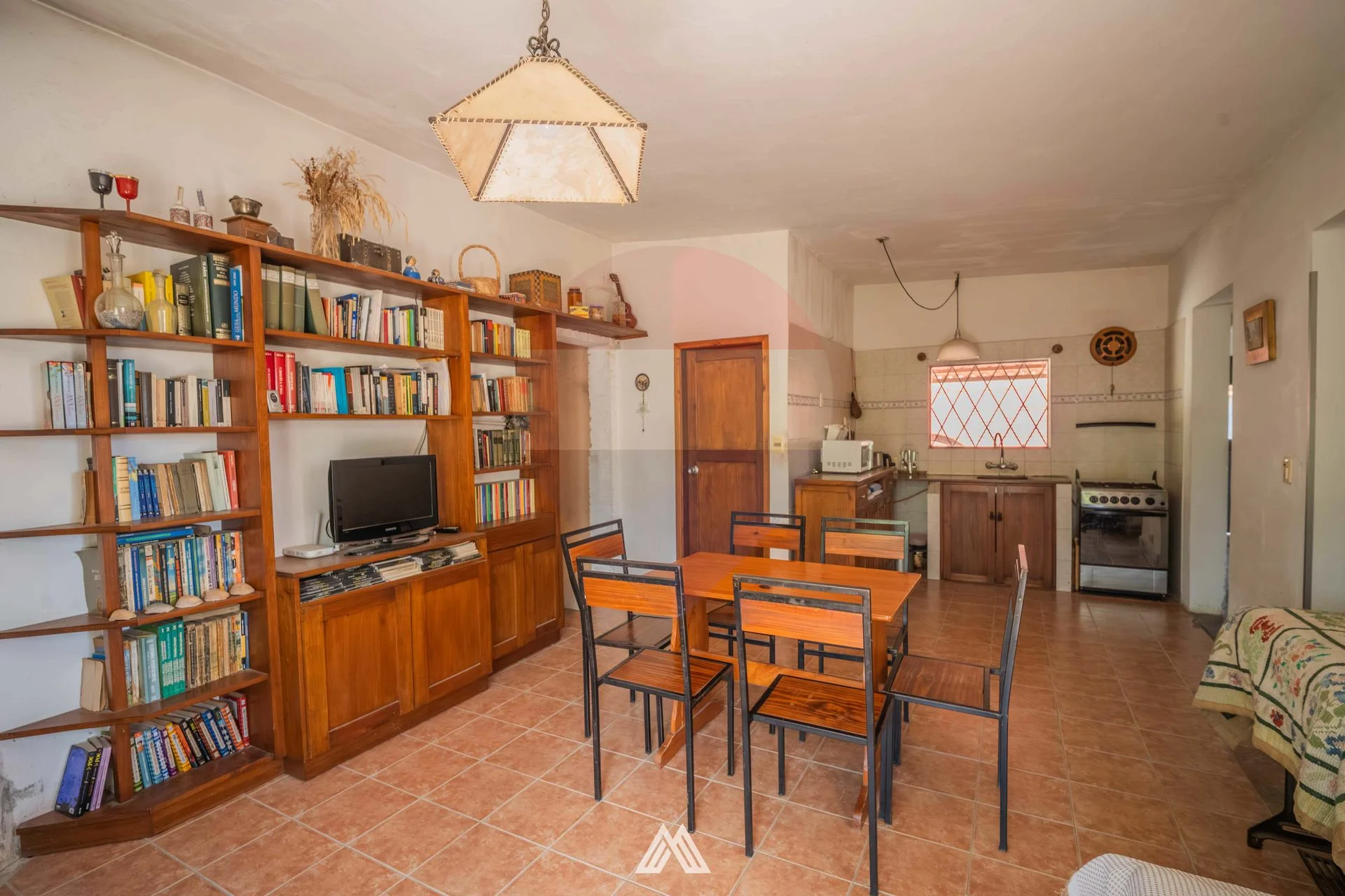 La casa principal, de construcción con techo de planchada, cuenta con living-comedor con estufa a leña y cocina integrada con mueble bajo mesada. Dispone además de un segundo estar con potencial para funcionar como cuarto dormitorio y dos baños, uno de ellos en construcción.