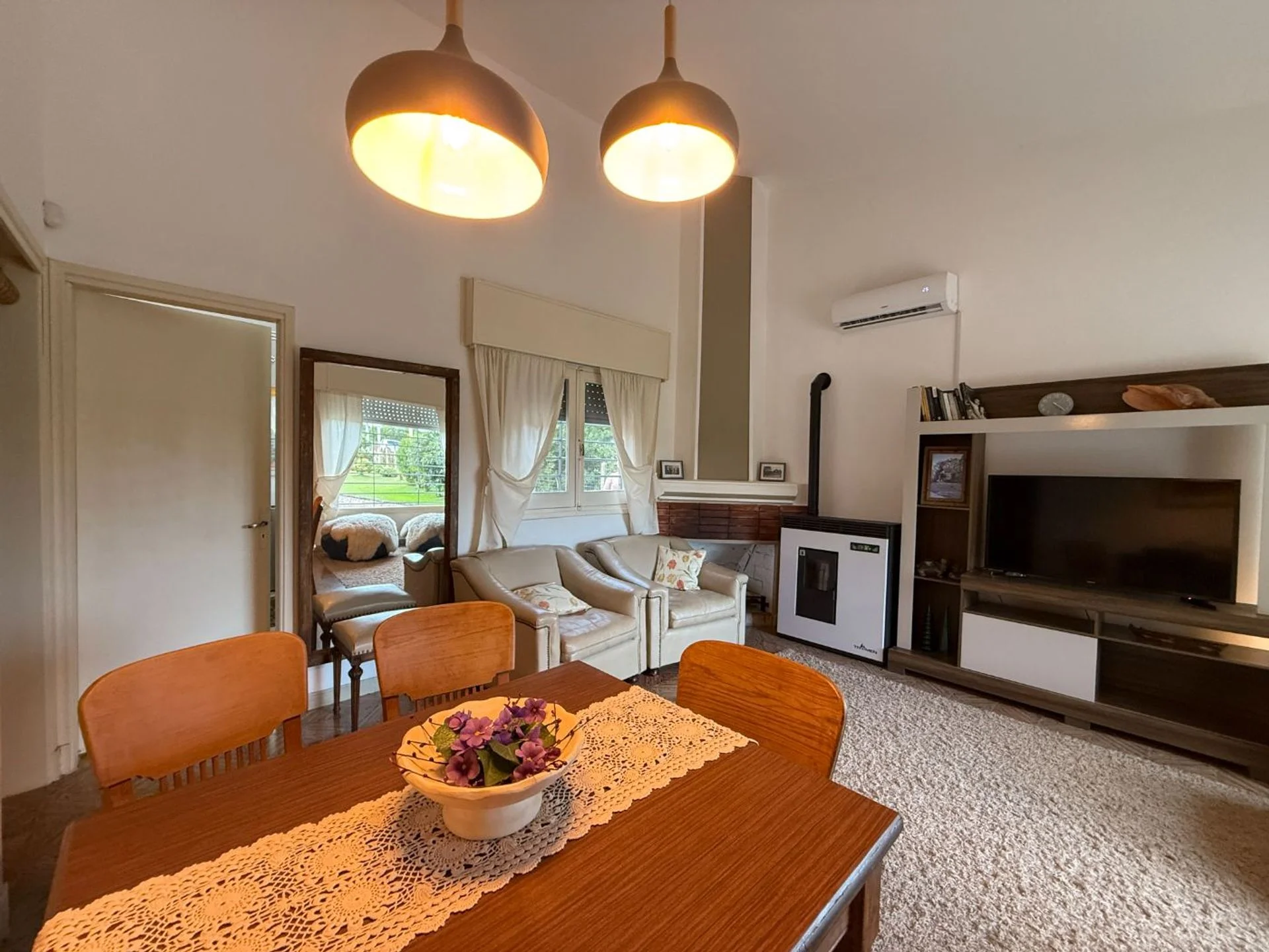 Cuenta con un calefactor a pelets, tres aires acondicionados y una estufa a leña.