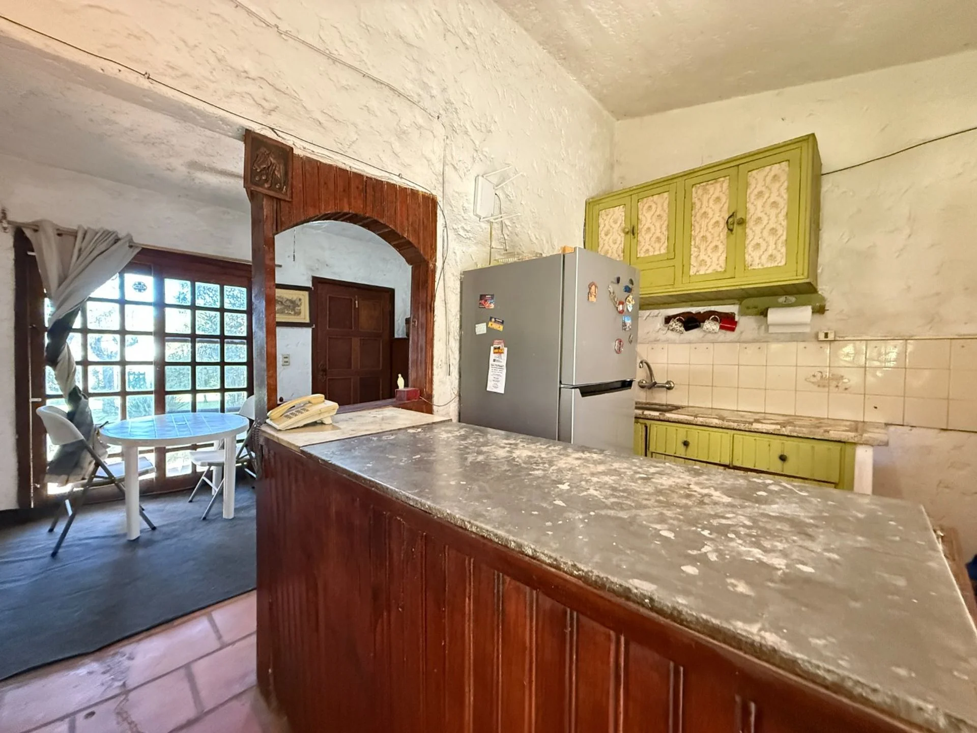 Construida en 1980, la casa ofrece una distribución funcional que incluye living, cocina semi-integrada y un espacio multiuso que puede utilizarse como barbacoa.