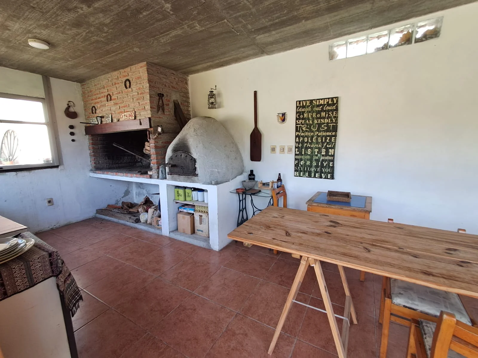 Barbacoa de 39 mtr2. Con parrillero y horno de pan. Con baño completo , muy comoda para disfrutar todo el año ya que tiene salida a la piscina. Y al ser cerrada con grandes ventanales también disfrutable en invierno.