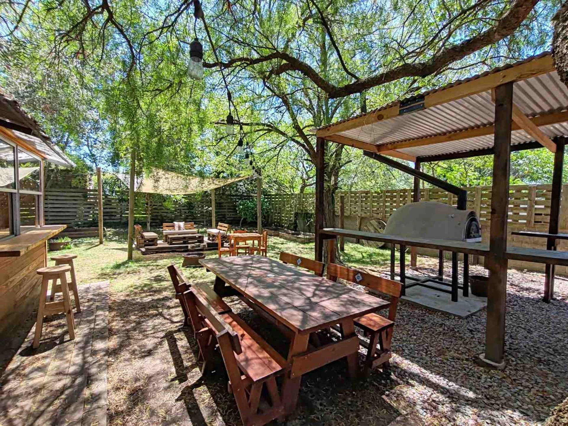 En el fondo ubicamos depósitos y barbacoa en madera y un techo liviano que alberga un horno a leña,