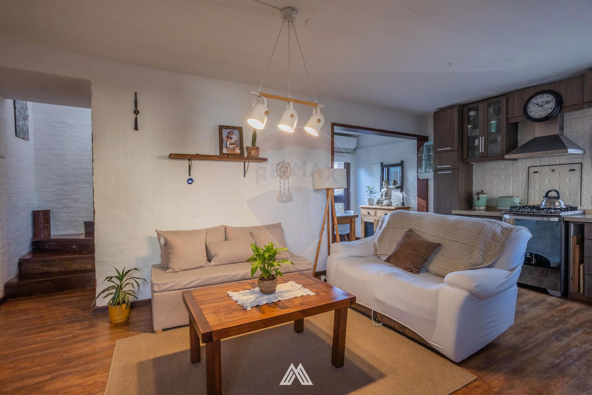 • Planta baja: living con estufa de alto rendimiento, comedor y cocina integrada que generan un ambiente abierto y cómodo. Cuenta además con un baño social.