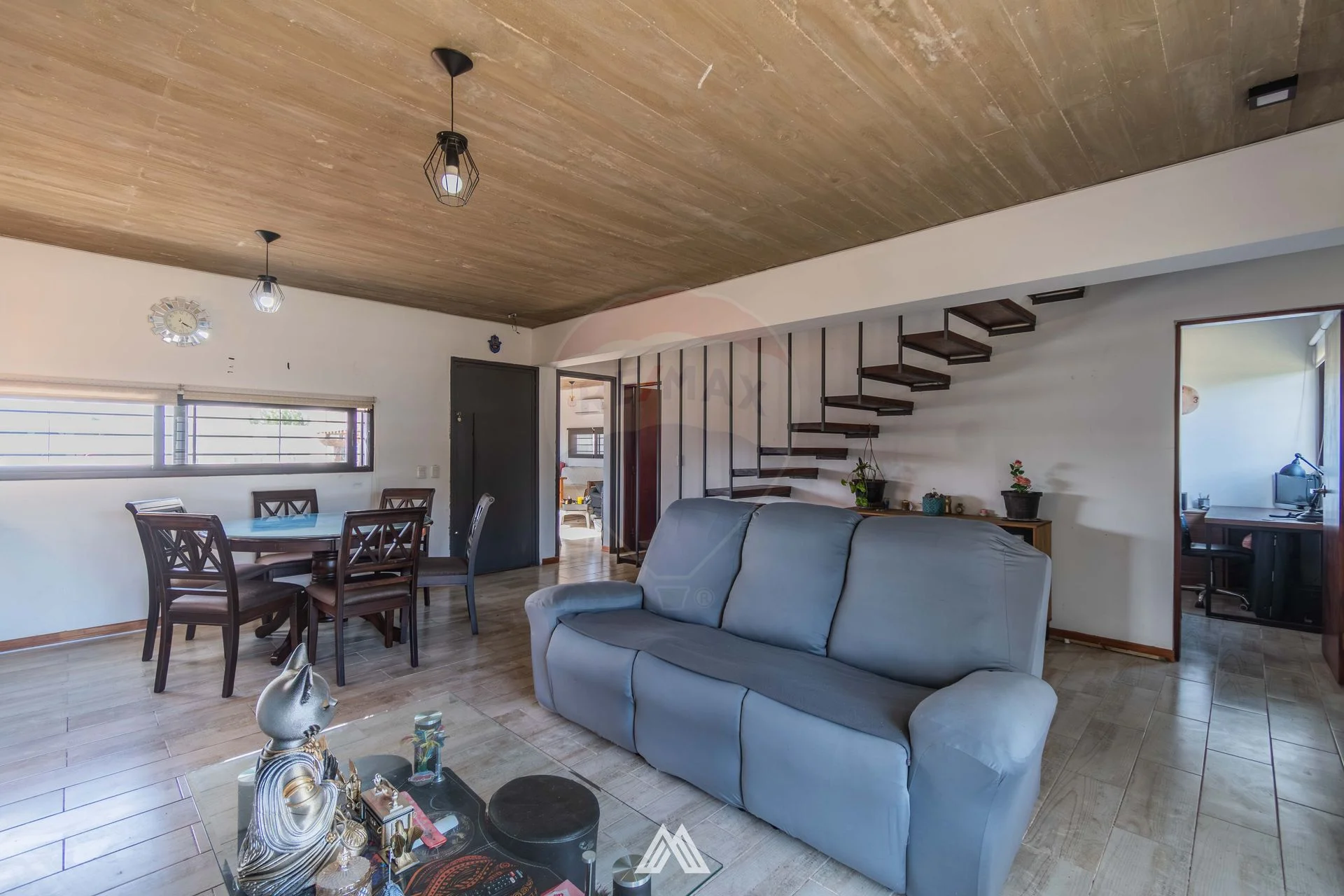 totalizan 818 m2, con 179 m2 edificados. Planta baja: living comedor con estufa de alto