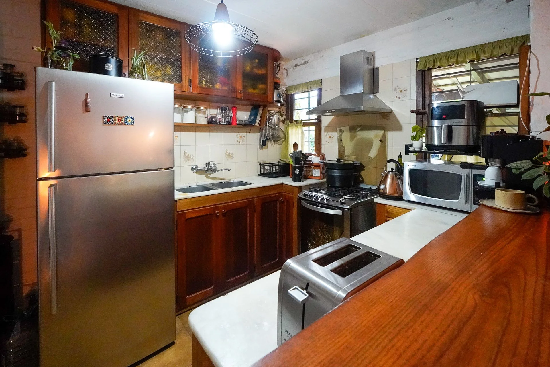 La vivienda cuenta con tres dormitorios, uno de ellos en suite, dos baños completos, living comedor y cocina integrada. Dispone de cochera, parrilero y espacios exteriores con potencial de ampliación. Sistema de calefacción con estufa de alto rendimiento complementado con aires acondicionados, garantizando confort en todas las estaciones.