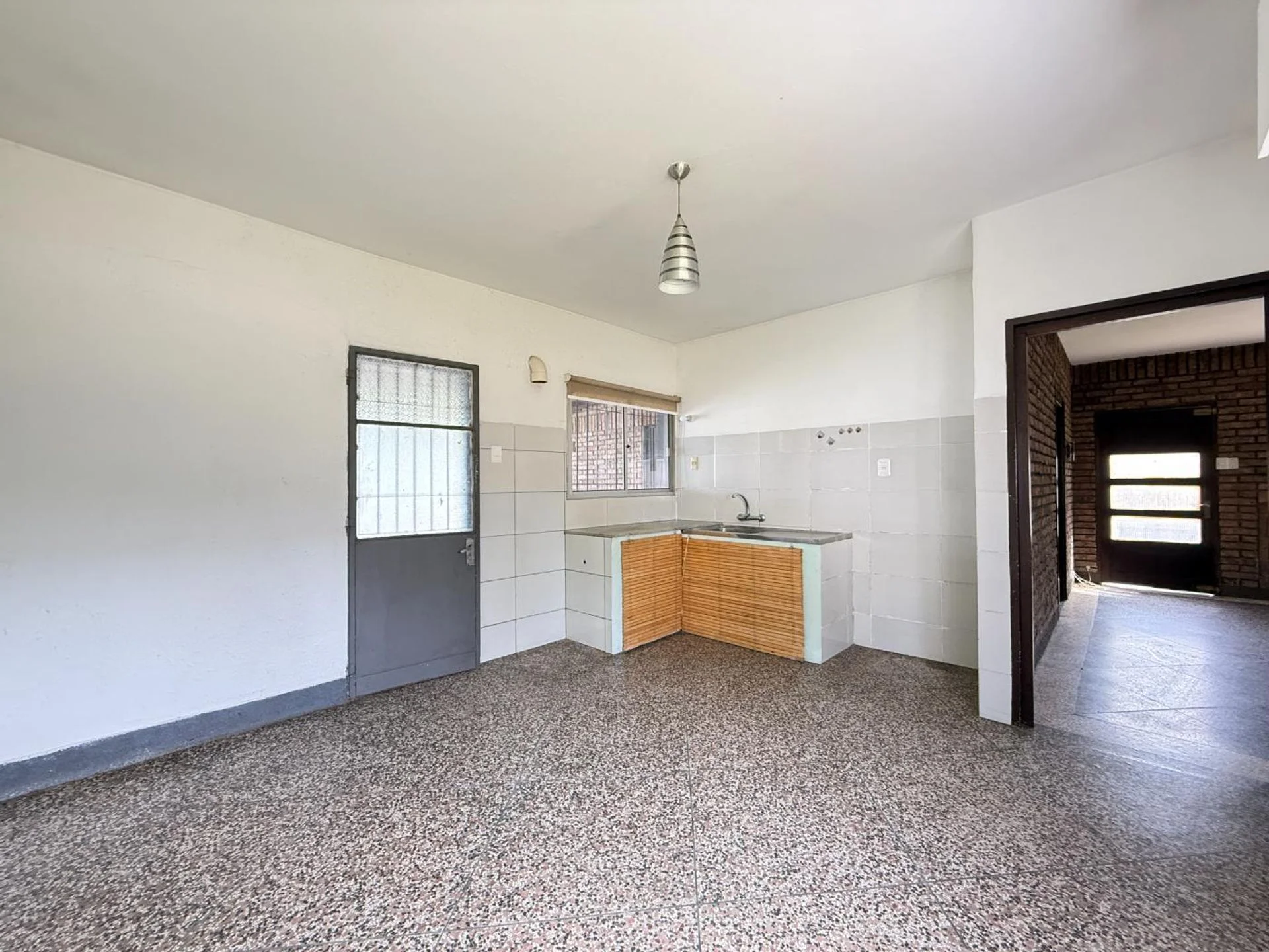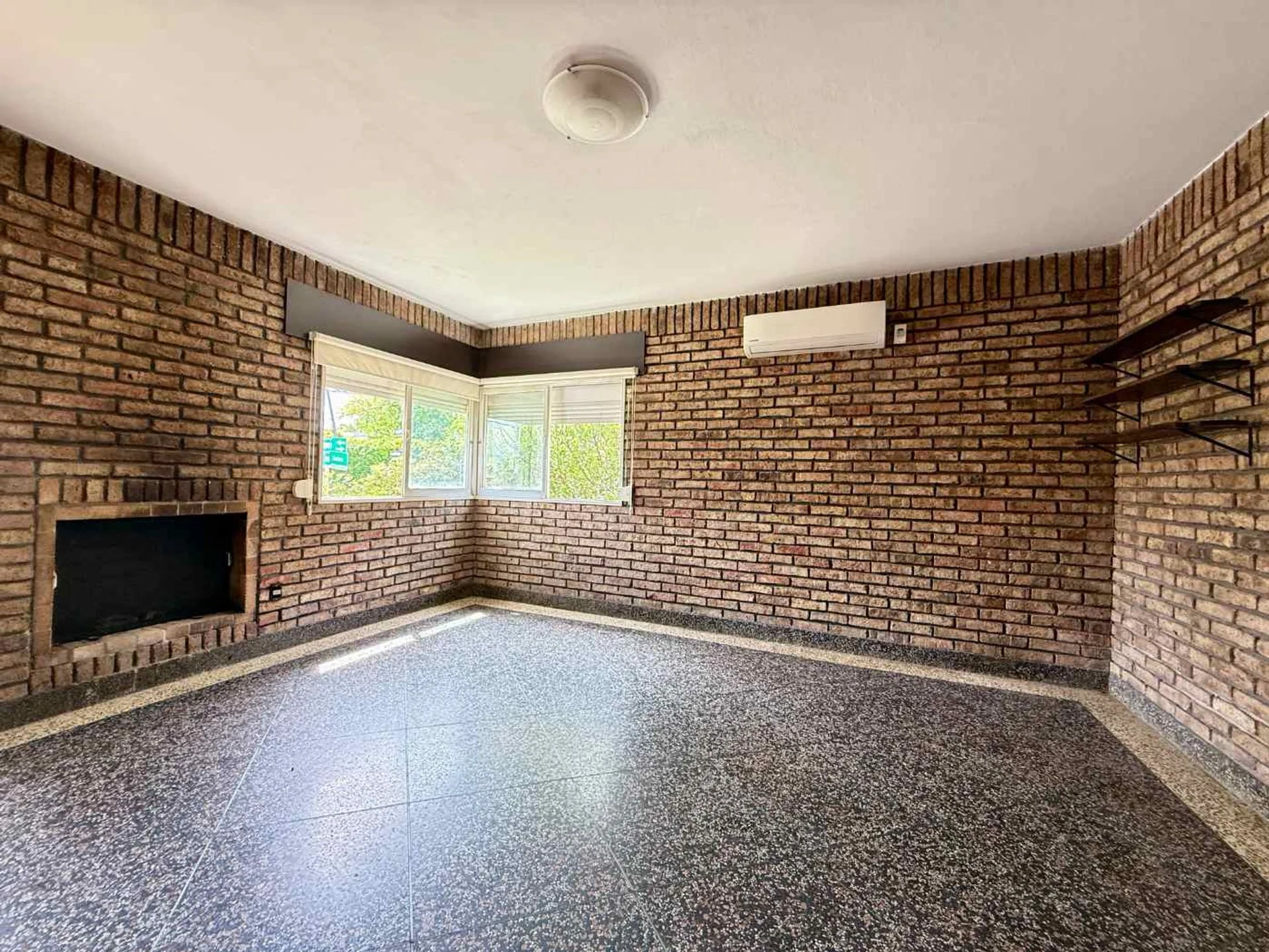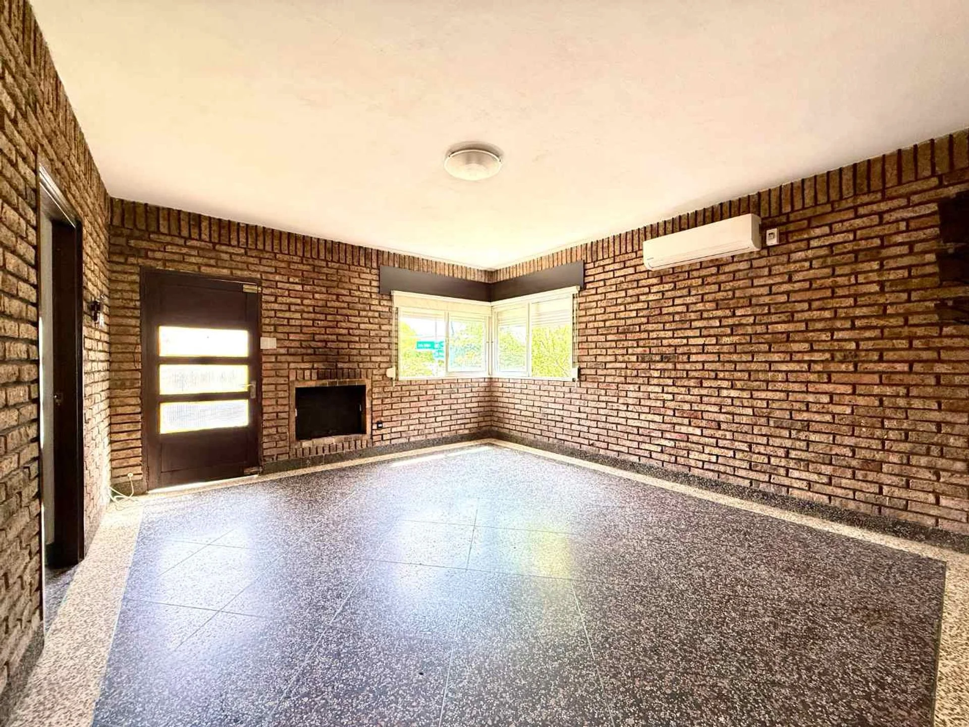 Cuenta con tres dormitorios con pisos de parquet en excelente estado, un amplio living comedor con estufa a leña y paredes de ladrillo a la vista, que aportan carácter y calidez al ambiente.