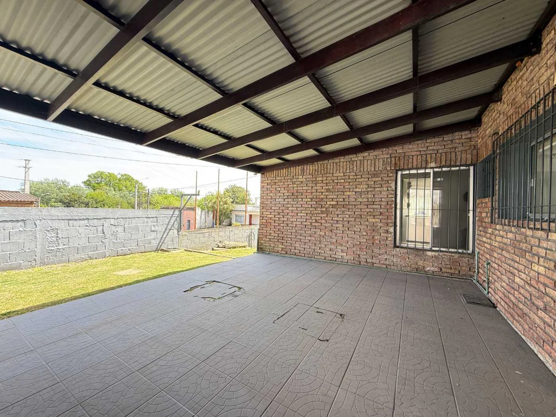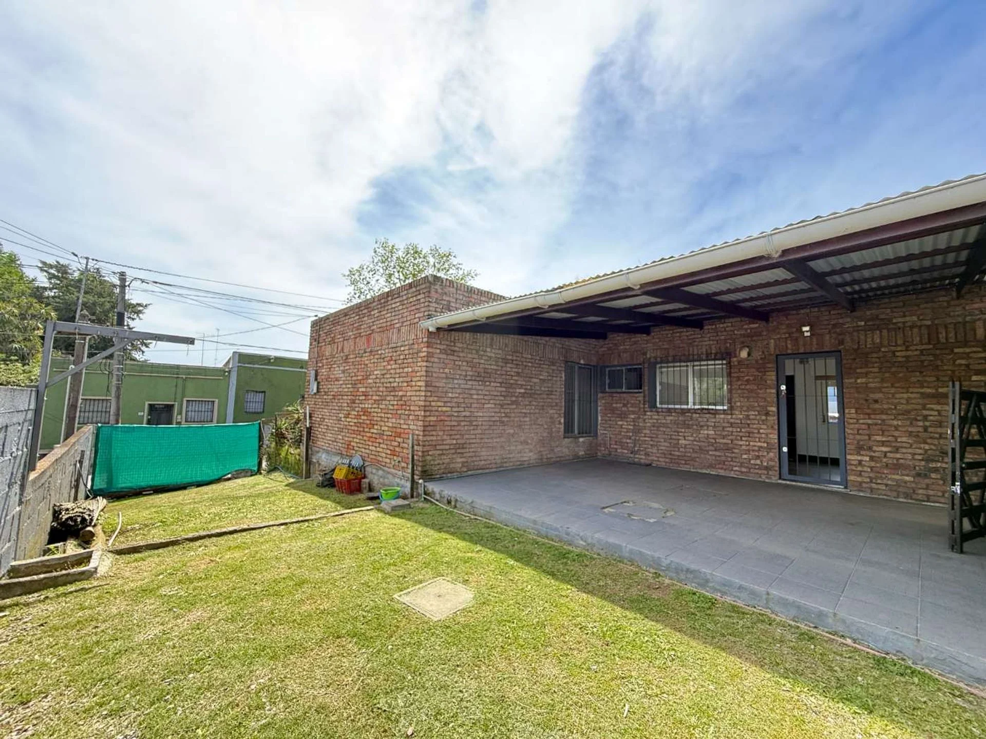 El porche techado brinda un espacio acogedor para descansar o recibir visitas, mientras que el jardín y el fondo ofrecen verde, tranquilidad y privacidad.