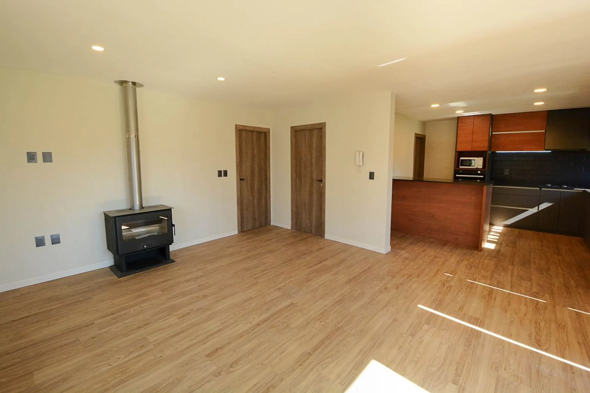 Al ingresar encontramos un cómodo living comedor con estufa de alto rendimiento y despojador. Sobre la mano derecha, se desarrolla la cocina, con isla, gran tamaño e iluminación, equipada con horno, anafe y extractor, desde allí conecta la sala de lavadero y despensa.