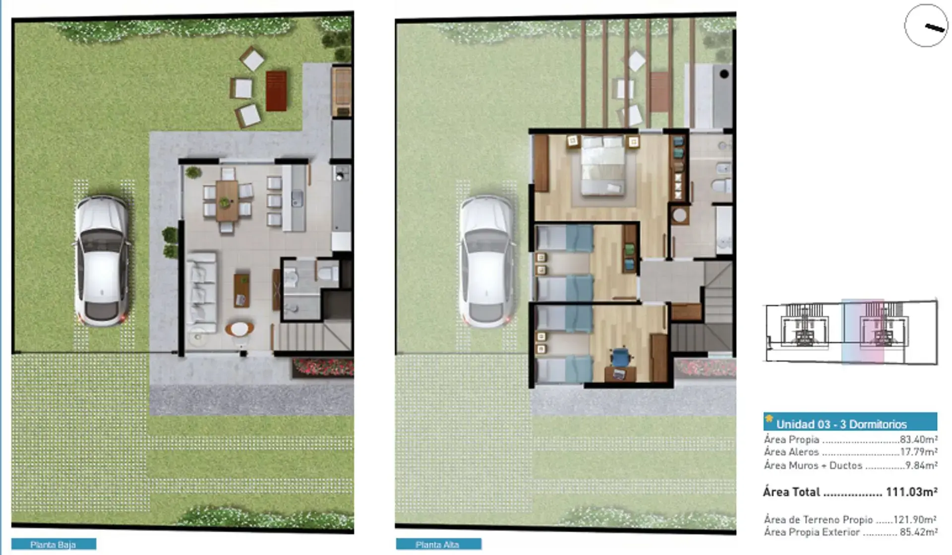 • Privacidad y seguridad: concepto in house, con muros perimetrales de 2 metros y cercos divisorios entre casas.