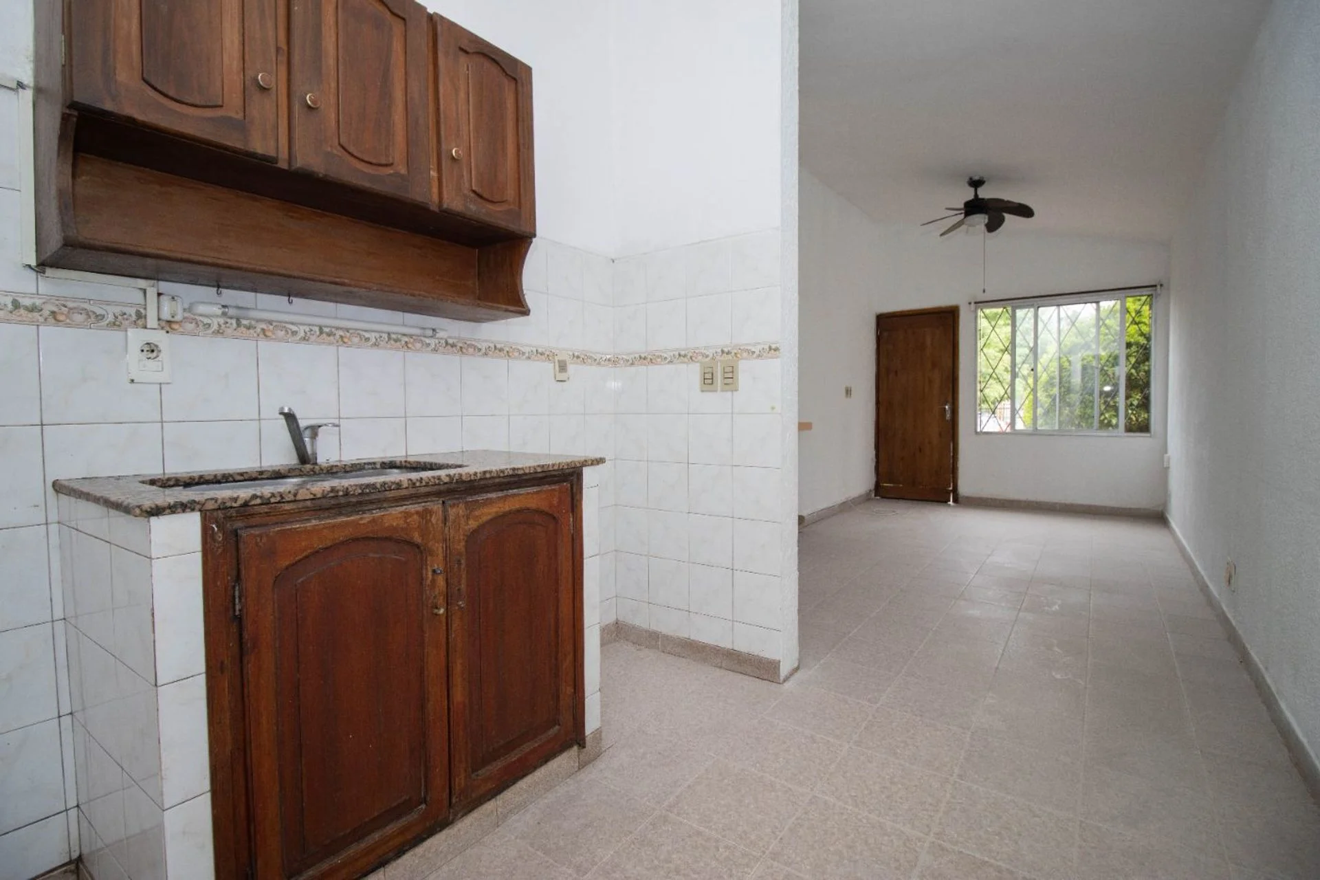 La cocina esta semi integrada al living y tiene mueble bajo mesada y extractor.