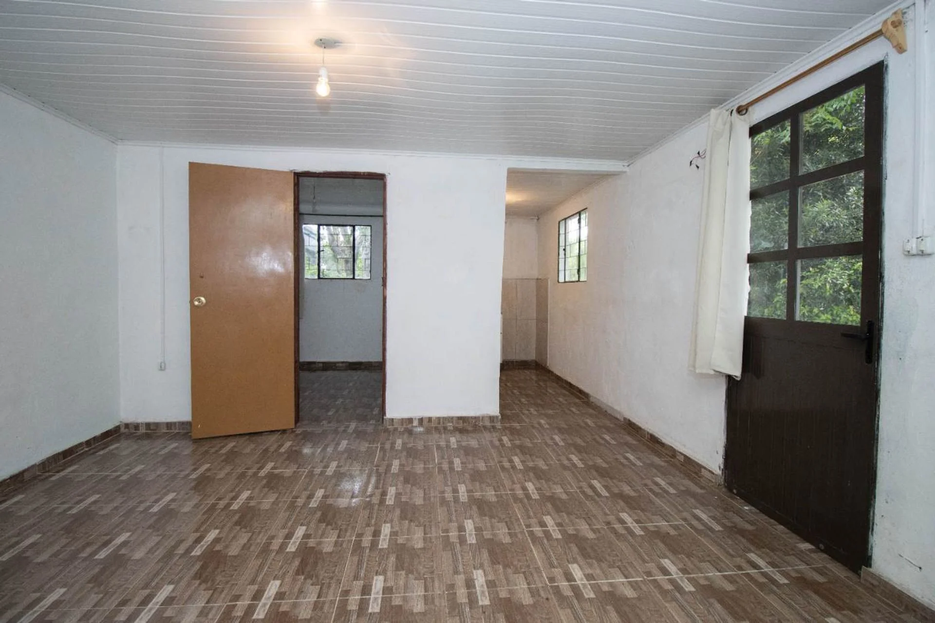 Esta casa también tiene dos cuartos, una cocina semiintegrada al living comedor y su respectivo baño.