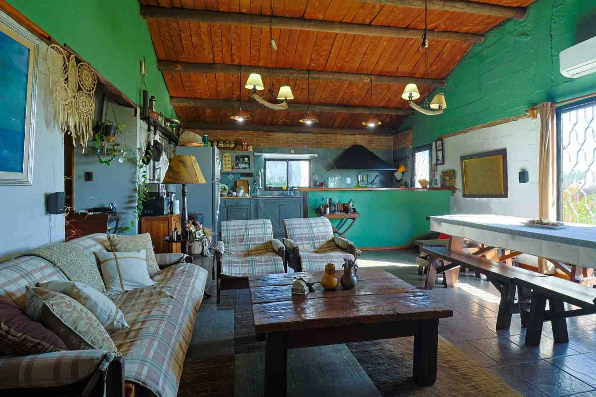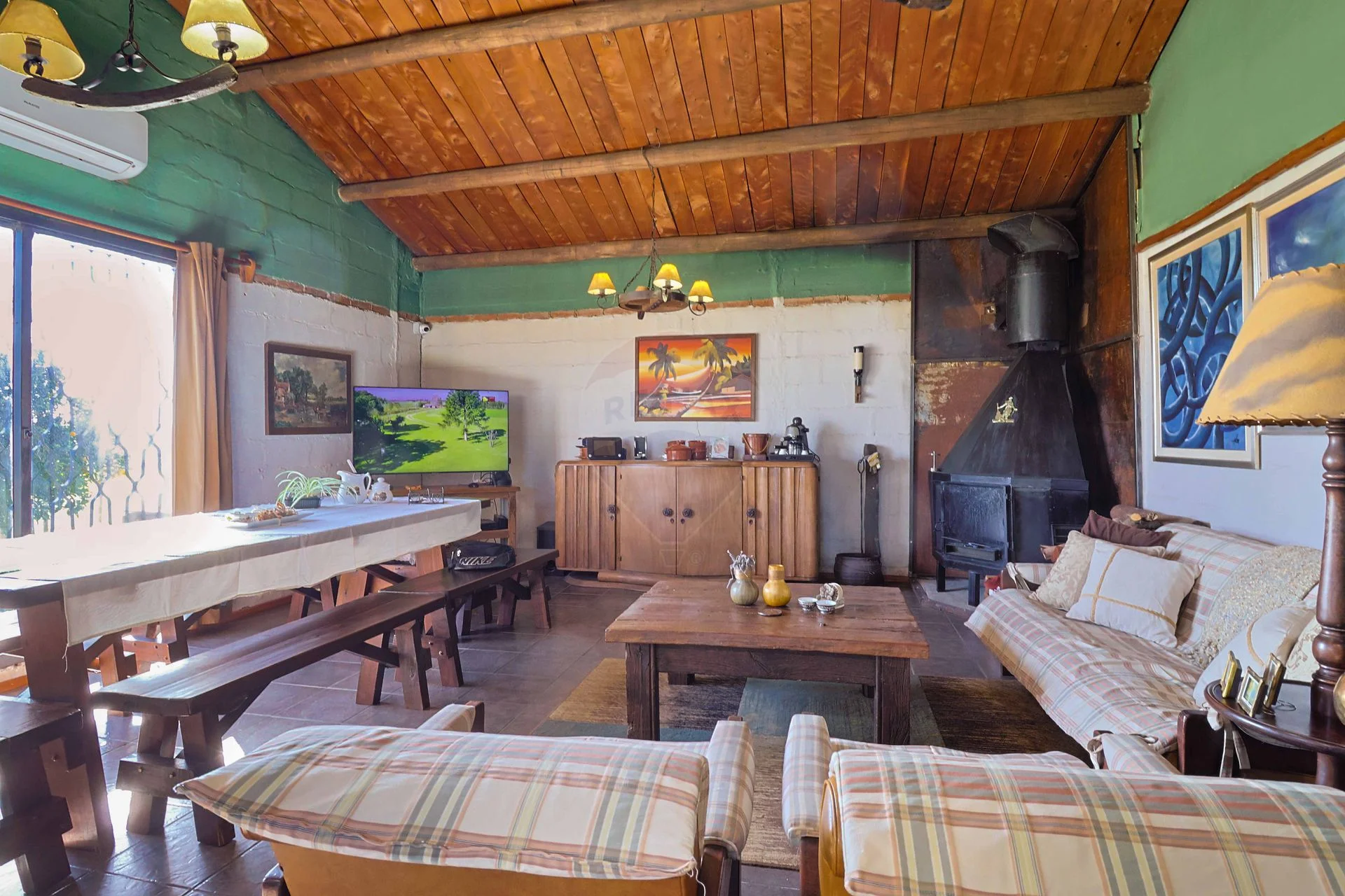 El techo es de chapa de zinc por fuera, y en el interior cielorrazo de madera.