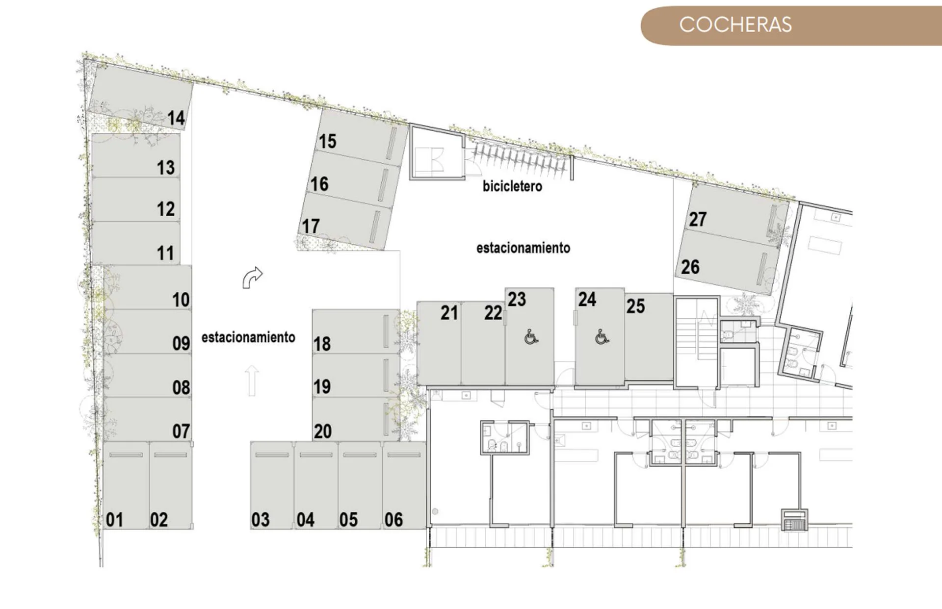 El proyecto se compone de 28 apartamentos, espacio para cocheras y un jardín lineal que incorpora un área de solárium y piscina.