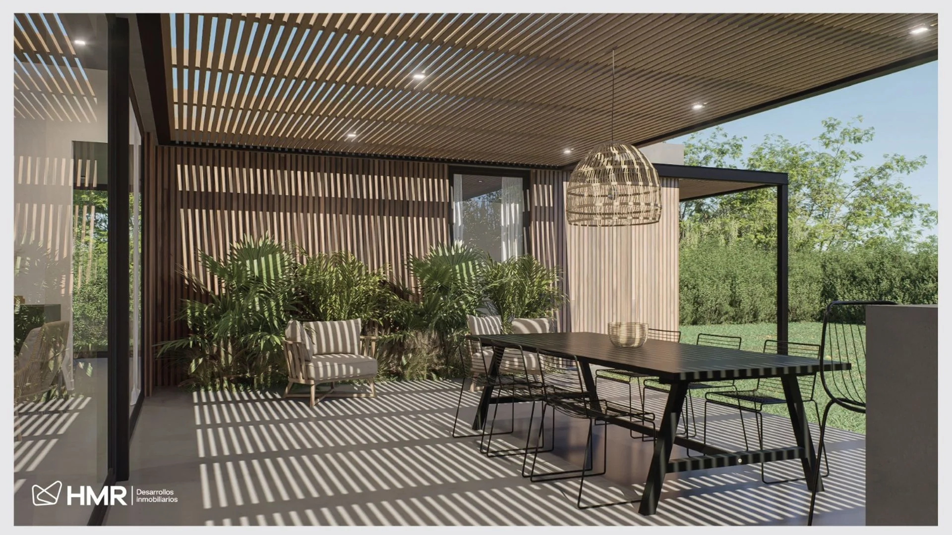 Moderna casa de 1 planta desarrollada por HMR, empresa con más de 20 años de experiencia. Ubicada en la primera etapa del barrio, con excelente orientación noreste y vistas únicas hacia Campo de la Tahona y la zona ecuestre.