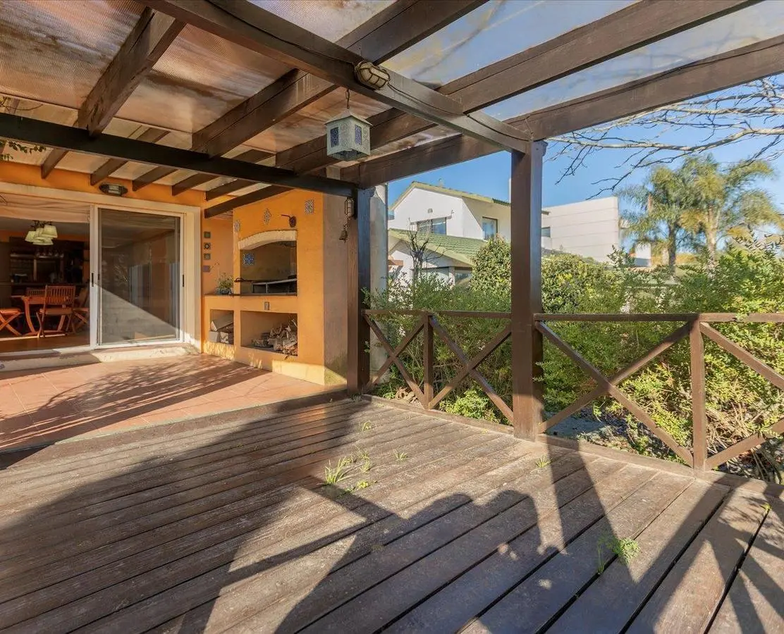 CASASWEB(240878) Hermosa y cómoda casa construcción tradicional estilo colonial, con excelentes terminaciones, en dos niveles.En planta baja con living comedor de gran tamaño con amplios ventanales al jardín con estufa a leña, baño social, estar amplio con estufa a leña que se comunica con la cocina y con amplia barbacoa con parrillero y estar con estufa a leña y baño social, acceso interno a garaje cerrado para 4 autos, con amplios ventanales al jardín lateral. La cocina completa con isla se comunica con entrada lateral con cochera abierta para al menos cuatro vehículos o galería disfrutable en verano. Desde la barbacoa cerrada se accede a amplio patio con pérgola de madera, otro parrillero y espacio para estar y comedor disfrutable en días de sol, junto con el amplio jardín cerrado por vegetación. En planta alta, accediendo a través de cómoda escalera se ubican tres dormitorios, dos al frente que comparten un baño desde los dormitorios y otro en suite con vestidor y baño completo con jacuzzi, desde el cual se accede a amplia terraza de 60 m2 ideal para las tardecitas de calor, con hermosas vistas. A esta terraza también se accede desde uno de los dos dormitorios al frente, el otro tiene acceso a balcón terraza. Amplio fondo verde y despejado, totalmente cerrado. Excelente ubicación dentro del barrio, con muy buen asoleamiento e iluminación natural. Ver mas detalles en casasweb.com?240878