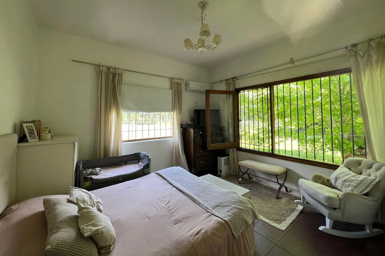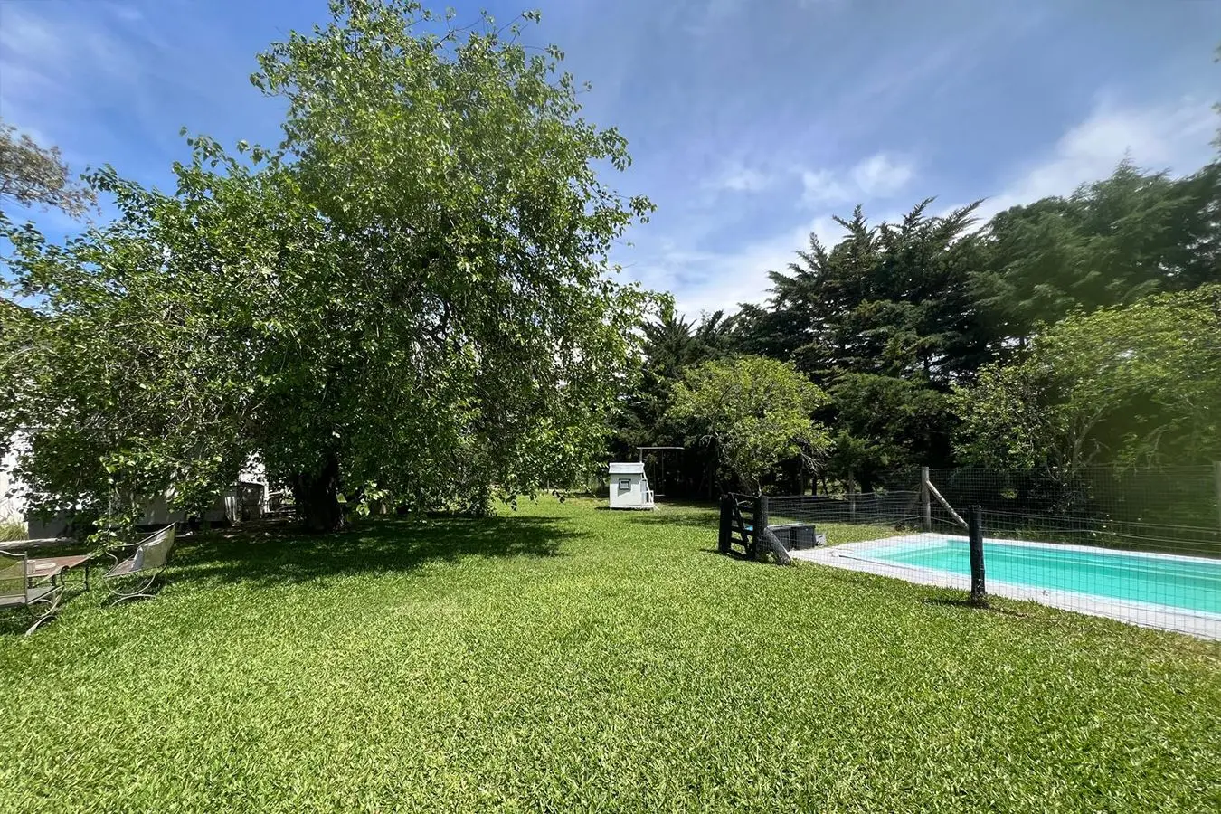 Con un terreno de 6.420 m², la propiedad se desarrolla en una cómoda planta de 210 m² construidos, ofreciendo ambientes amplios, funcionales y con buena iluminación. Cálido estar con estufa a leña, cocina con comedor diario, 2 dormitorios y 1 baño completo. Gran jardín arbolado con piscina. Loft o barbacoa cerrada con parrillero, con dormitorio, baño y servicio completo. Depósito de gran tamaño, que brinda espacio adicional de guardado. Calefacción por losa radiante, estufa a leña en estar y barbacoa y aire acondicionado en dormitorio principal.