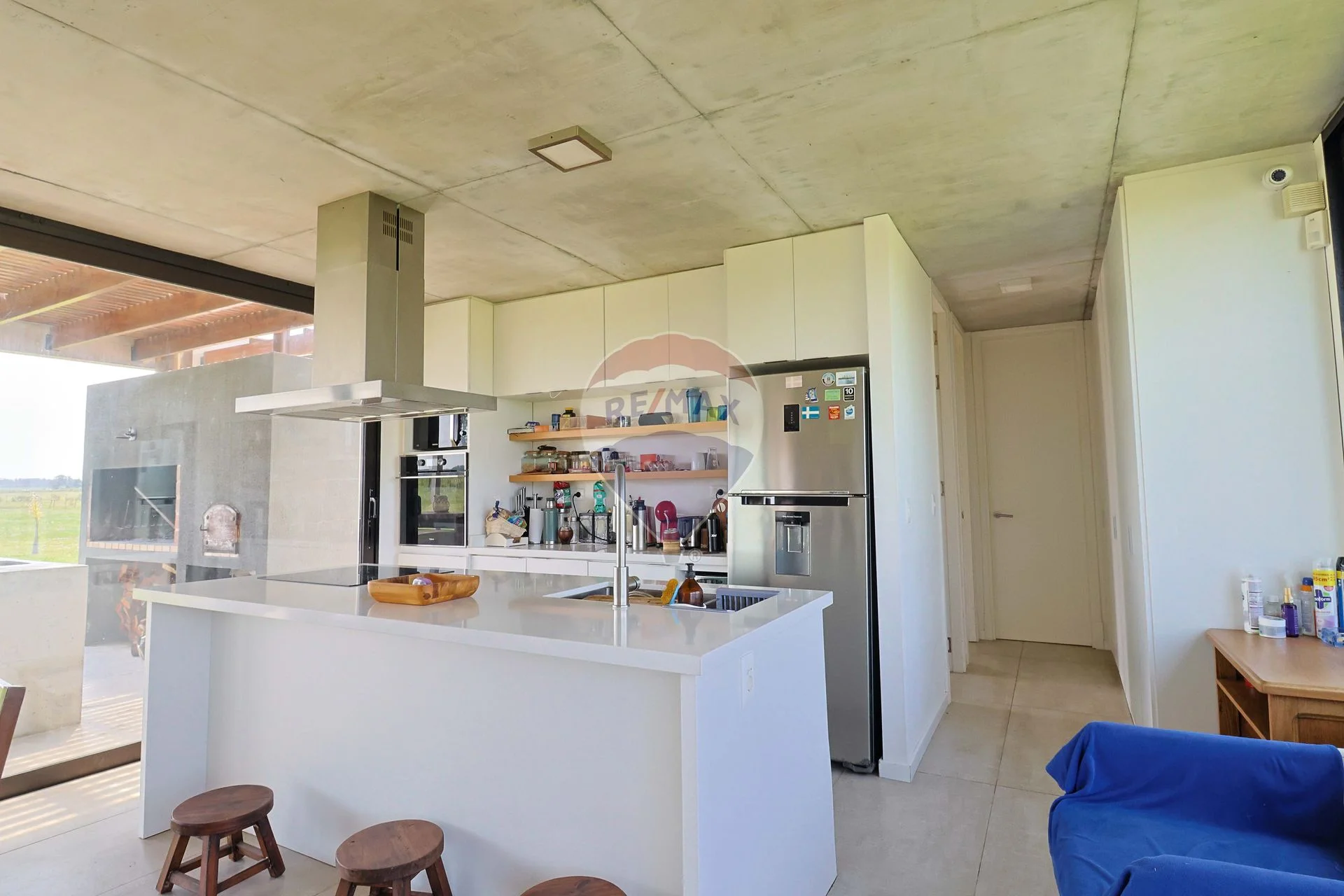 Cocina integrada a living comedor con cómoda isla. Anafe, horno eléctrico y campana.