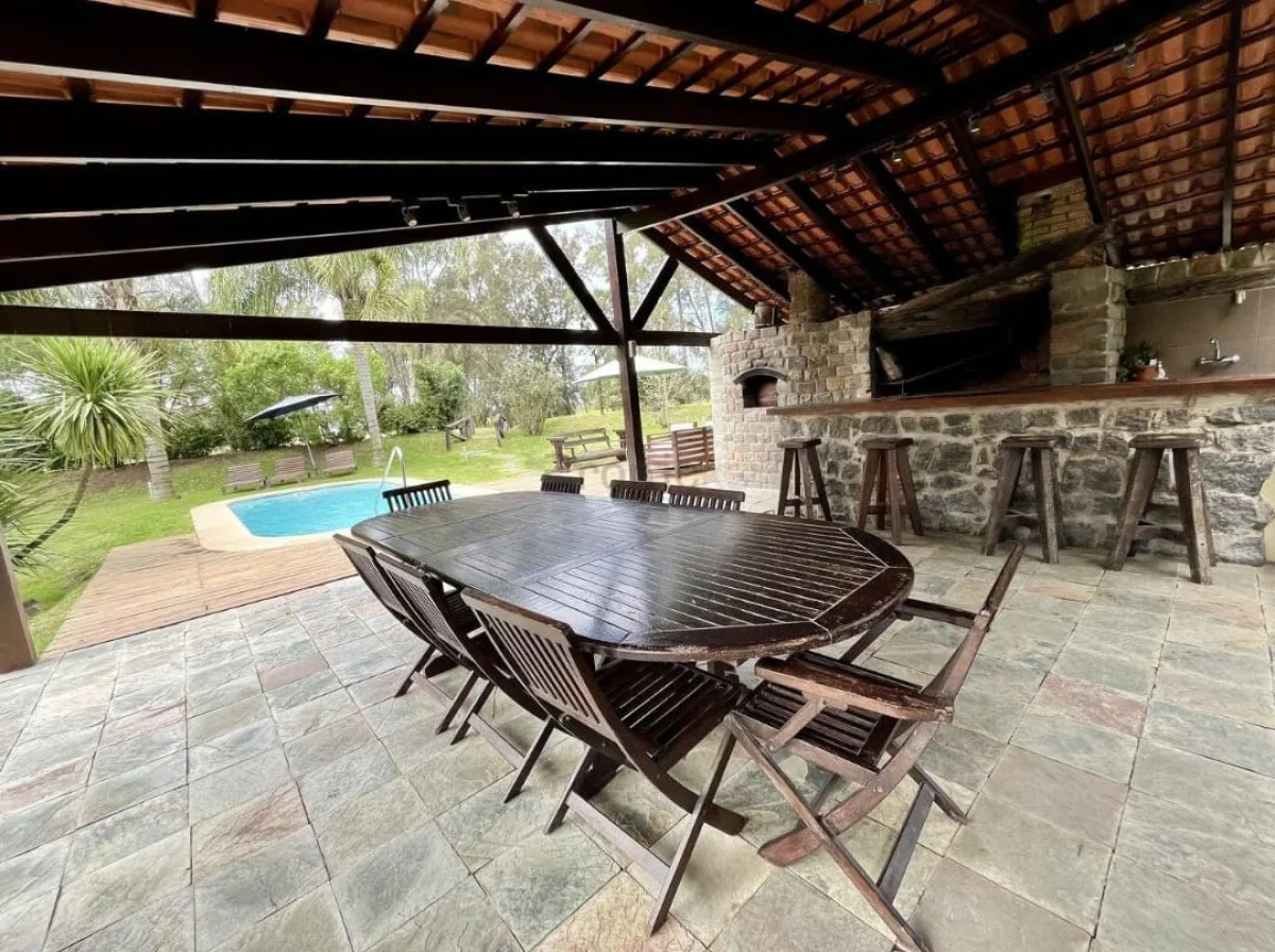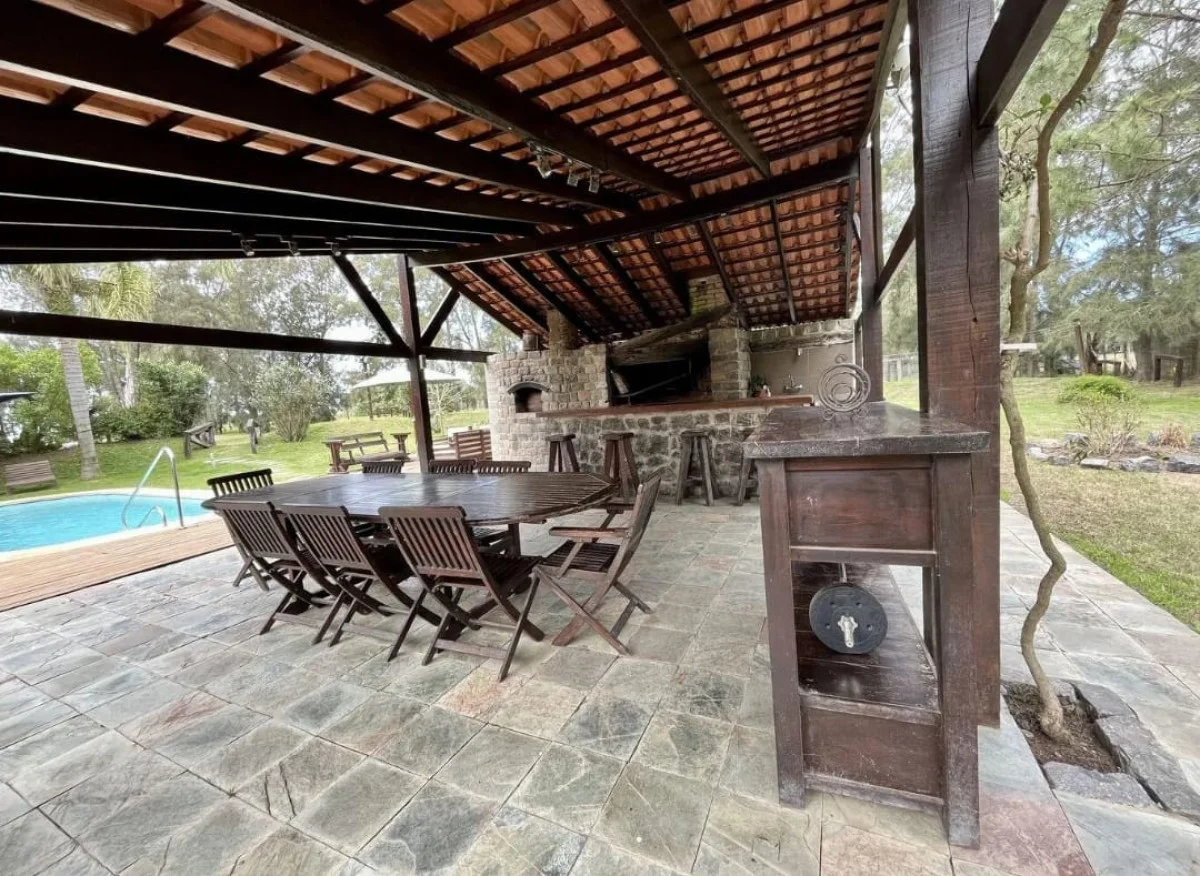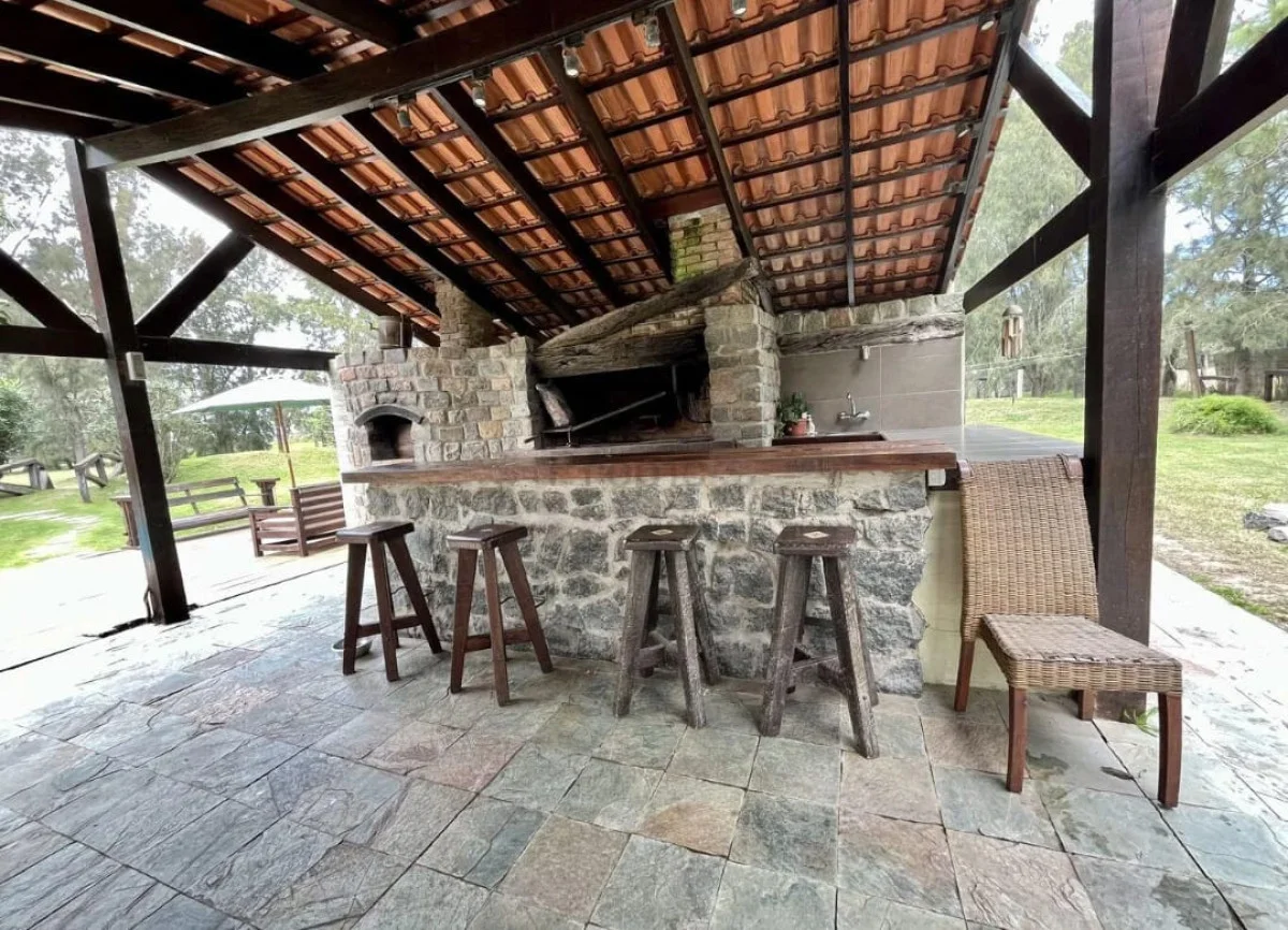 Para los amantes de las actividades al aire libre y las reuniones sociales, la chacra ofrece un parrillero cubierto de piedra, equipado con horno de pizza y fogón criollo, creando el escenario perfecto para inolvidables asados. También incluye un galpón para herramientas, garantizando espacio de almacenamiento adicional.