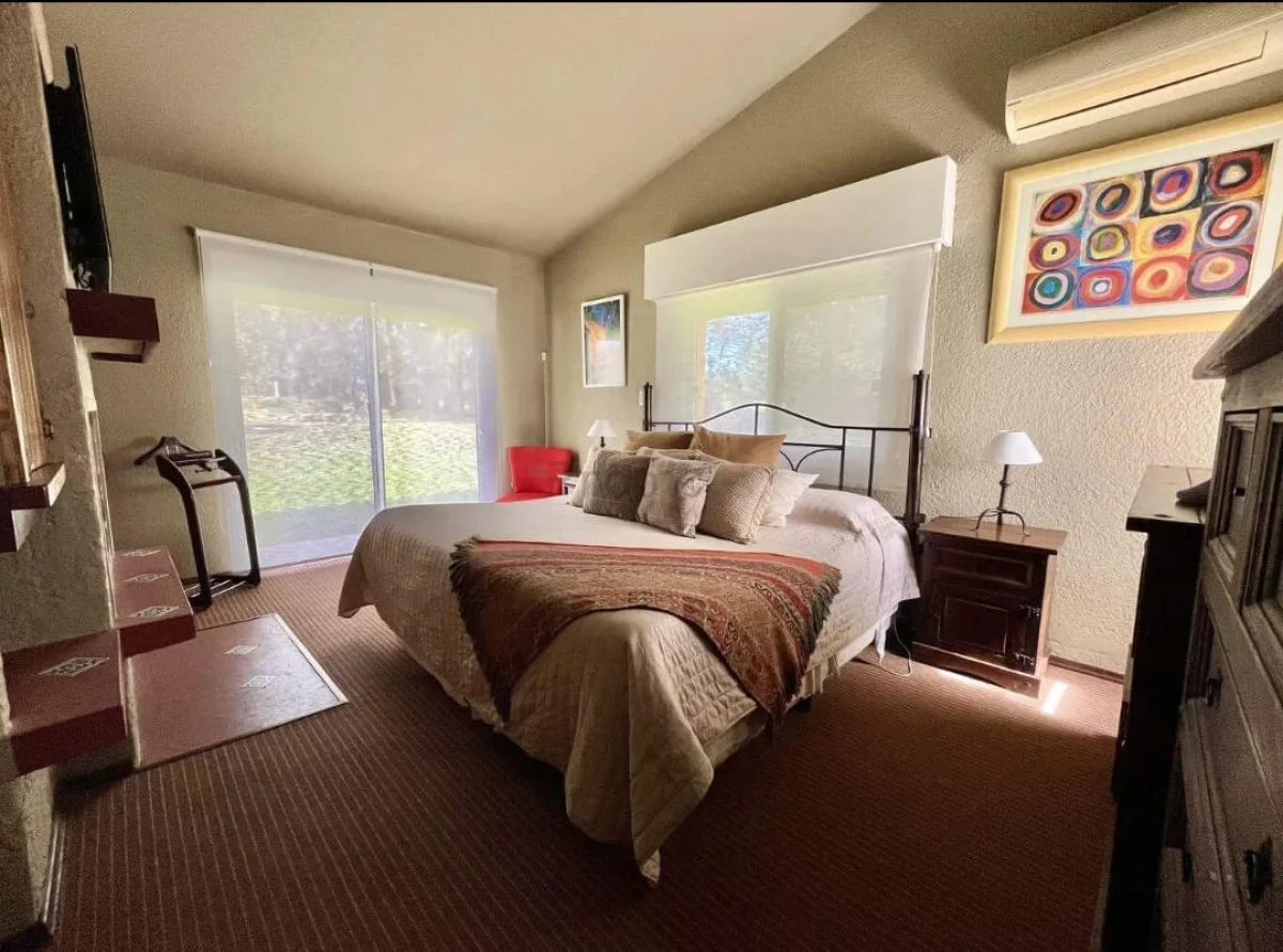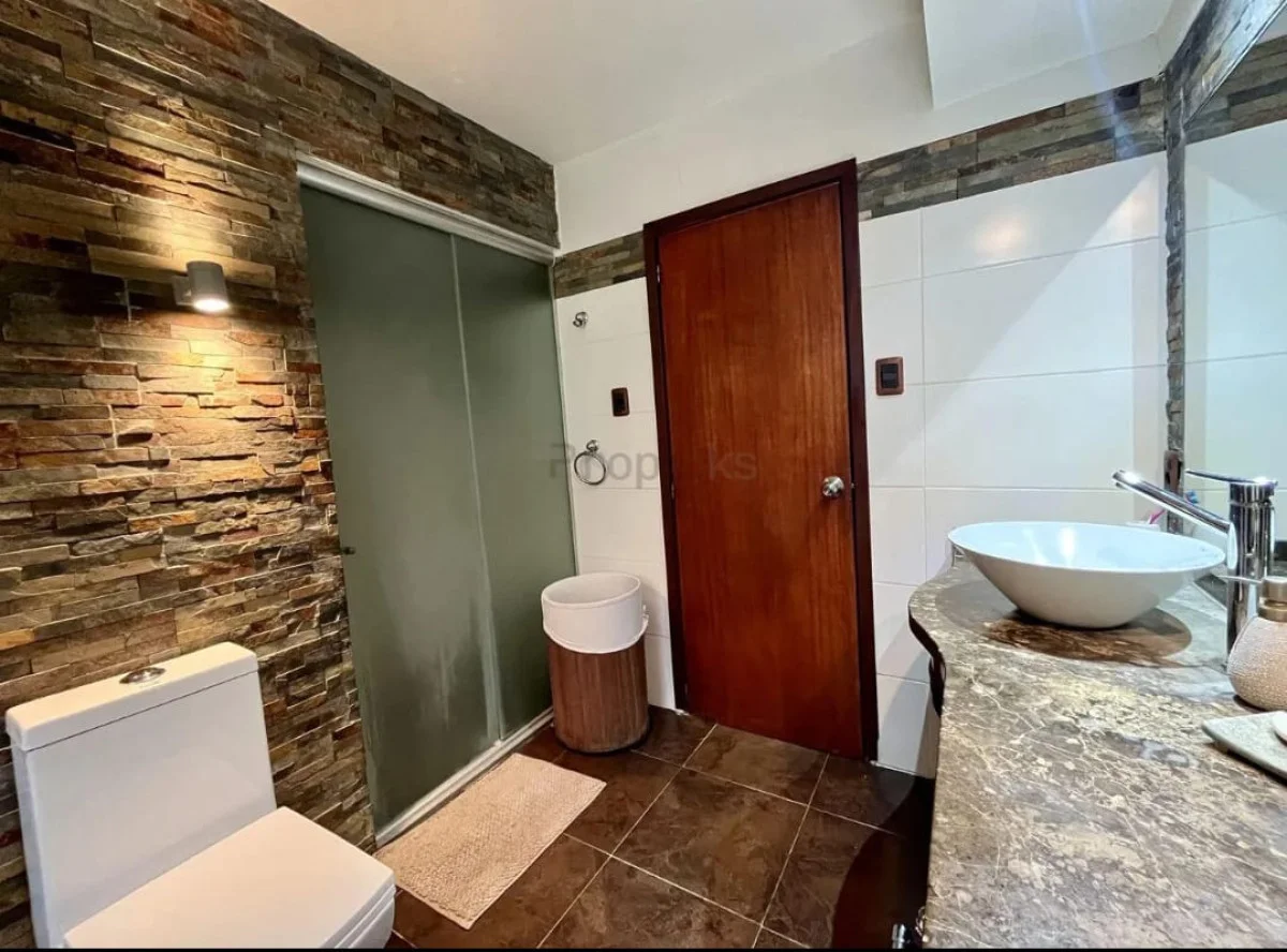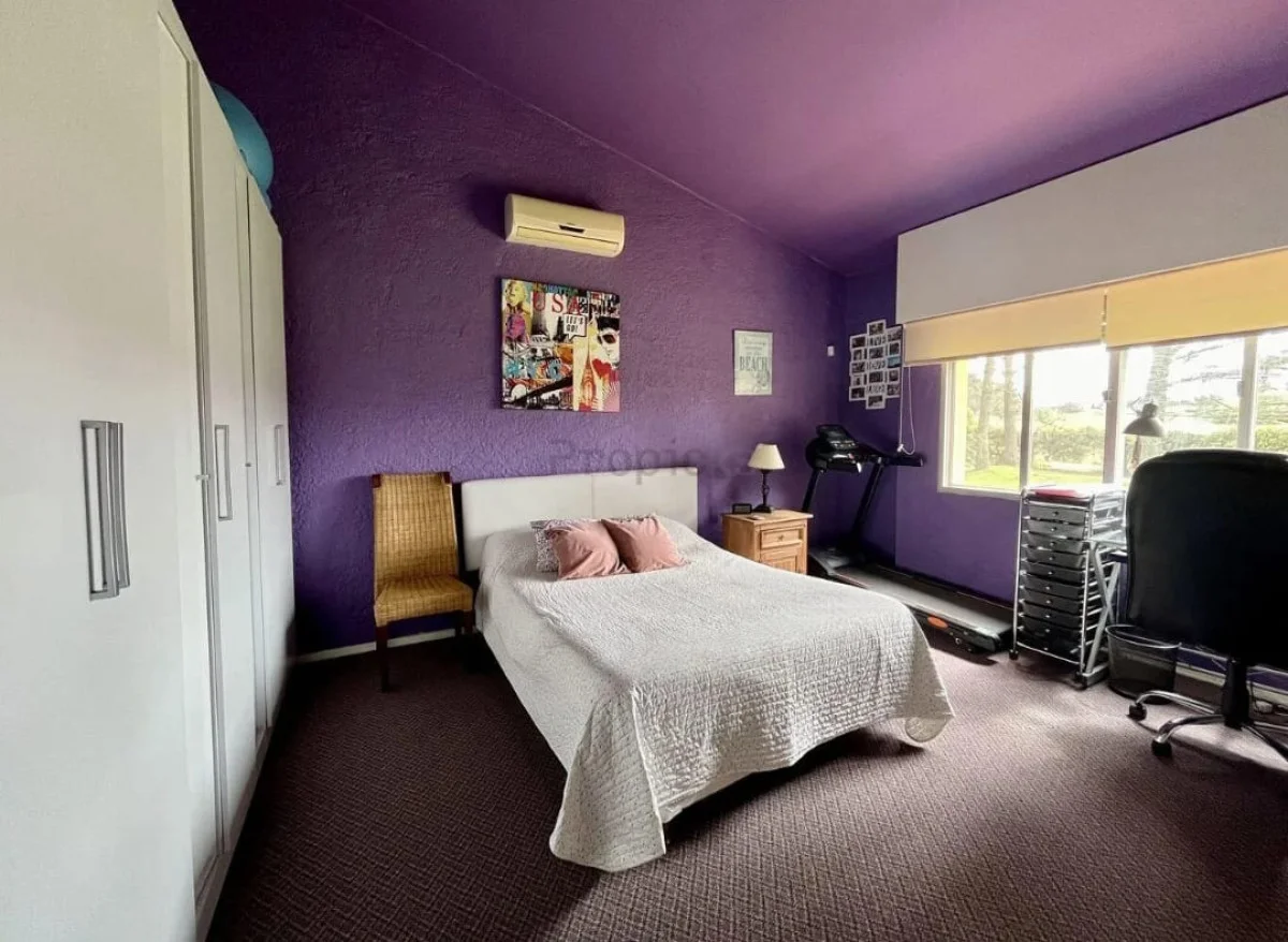 La casa principal, de arquitectura tradicional, ofrece amplios y luminosos espacios. La sala de estar, con techos altos y un diseño cálido, cuenta con estufas a leña que invitan a la relajación durante los meses más fríos. Dispone de un total de cuatro dormitorios, uno de ellos en suite con un lujoso jacuzzi. Los baños han sido diseñados con acabados de piedra y mármol que aportan un toque rústico y elegante. La cocina, de estilo tradicional, está completamente equipada con mesadas de granito negro y gabinetes blancos, ofreciendo un ambiente funcional y acogedor. El comedor, con capacidad para ocho personas, es ideal para disfrutar de cenas familiares y reuniones con amigos.