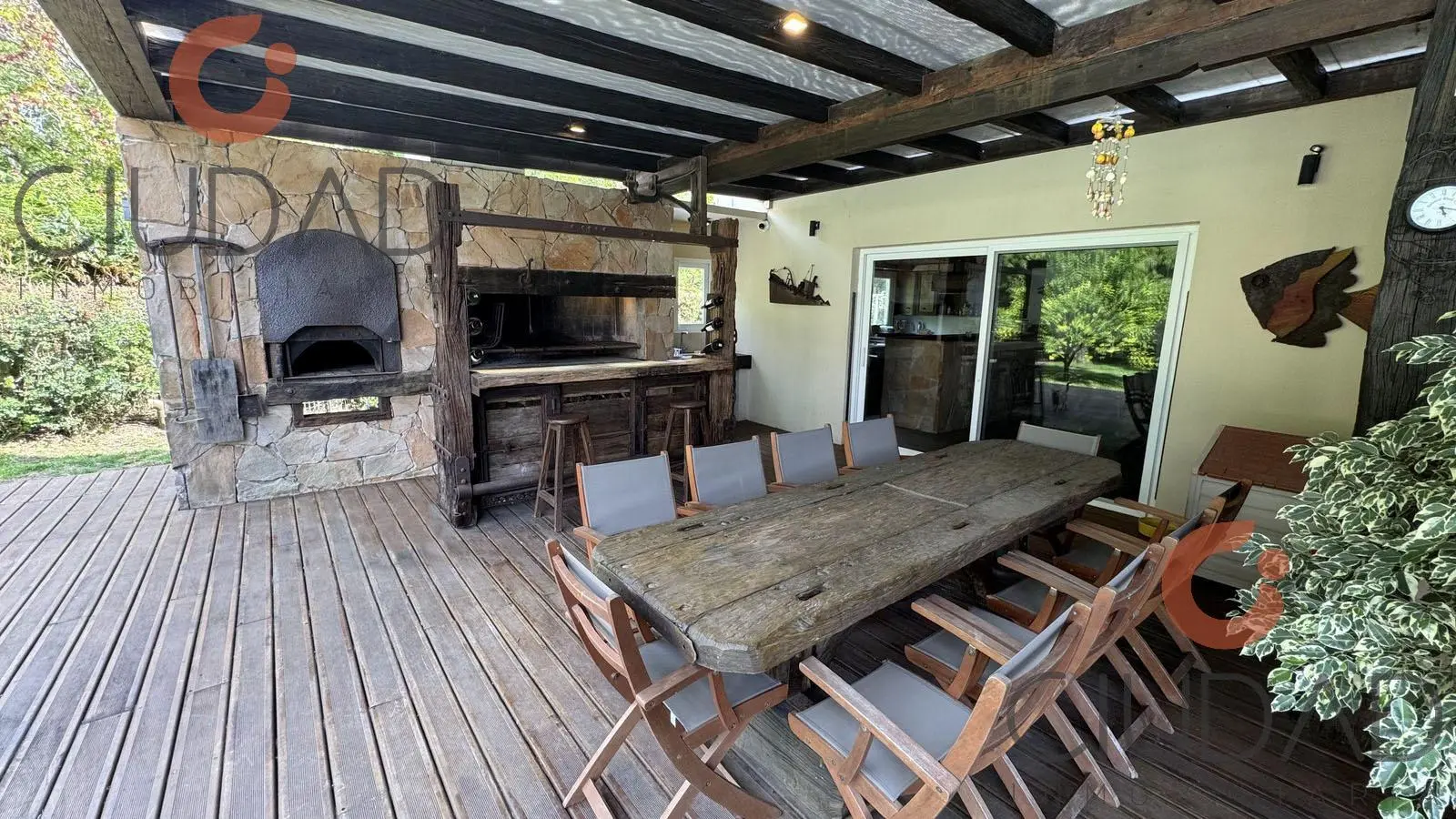 - Parrillero de 100 m² sobre deck de madera natural, rodeado de un amplio solárium y la piscina. El lugar perfecto para compartir momentos inolvidables en familia o con amigos.
