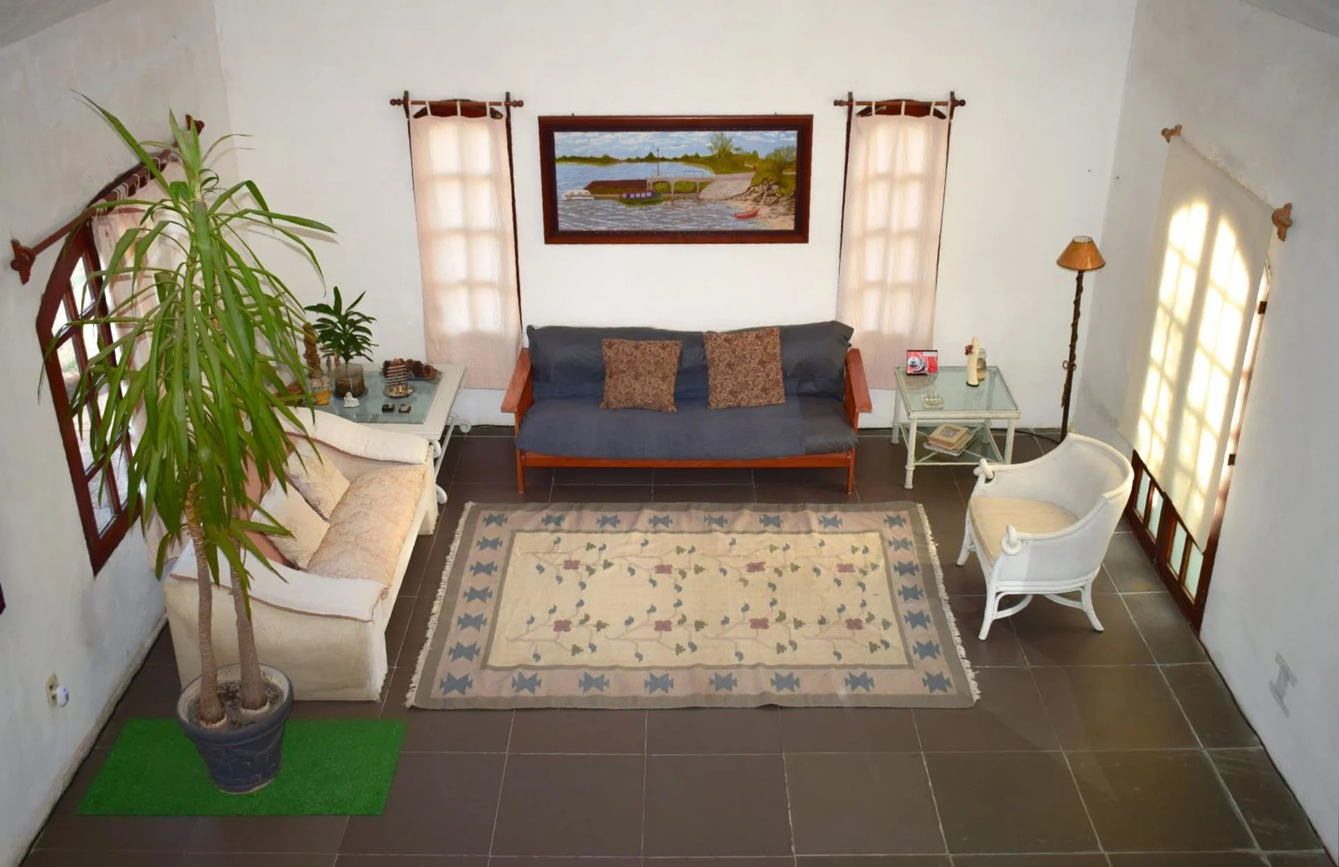 - Pisos de cerámica oscura, prácticos y duraderos.