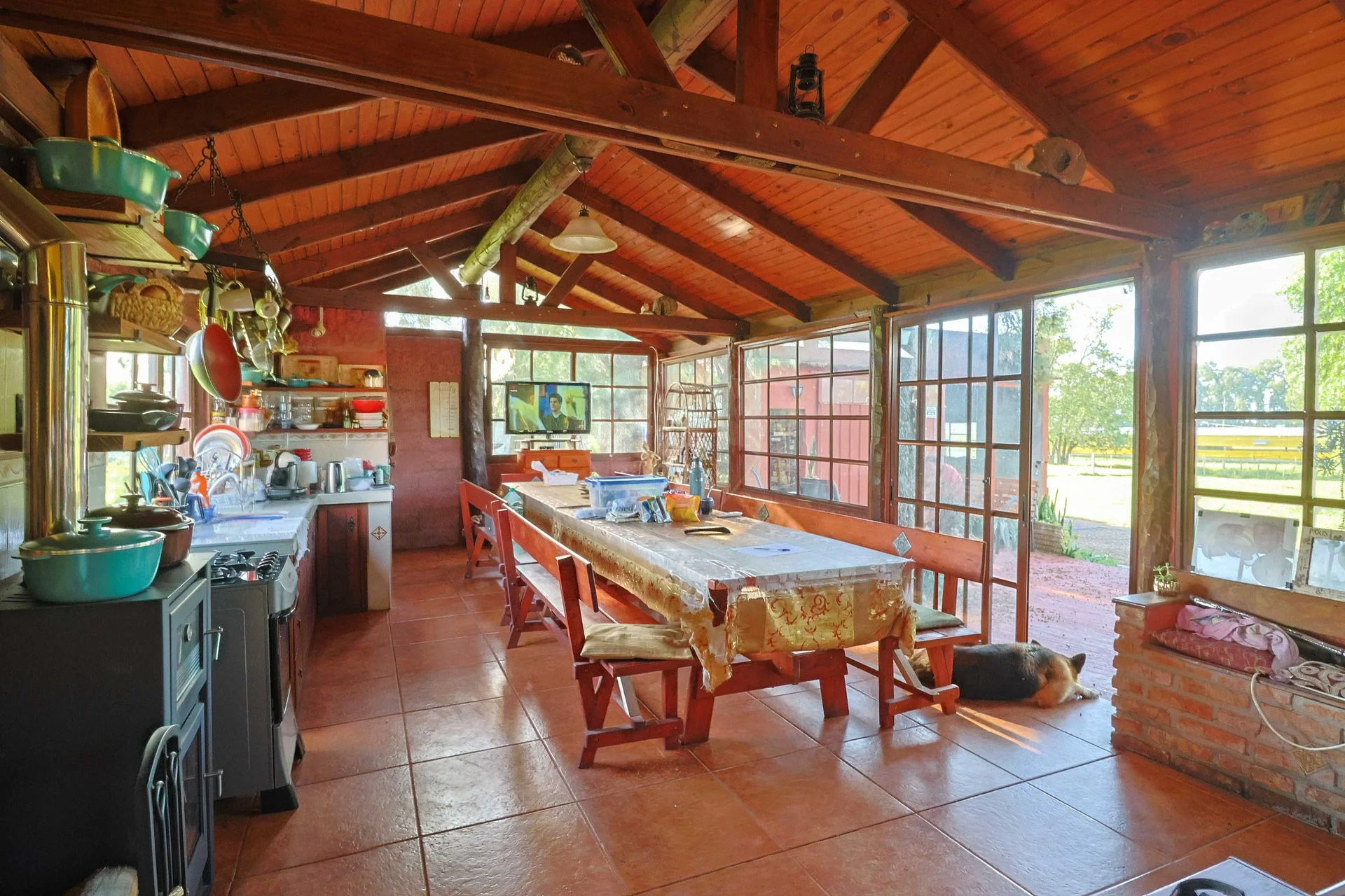 En el predio hay una casa principal de 150 m2 con living-comedor, estufa a leña y cocina integrada, otra sala que puede ser un estar o sala de juegos, 3 dormitorios y un baño.