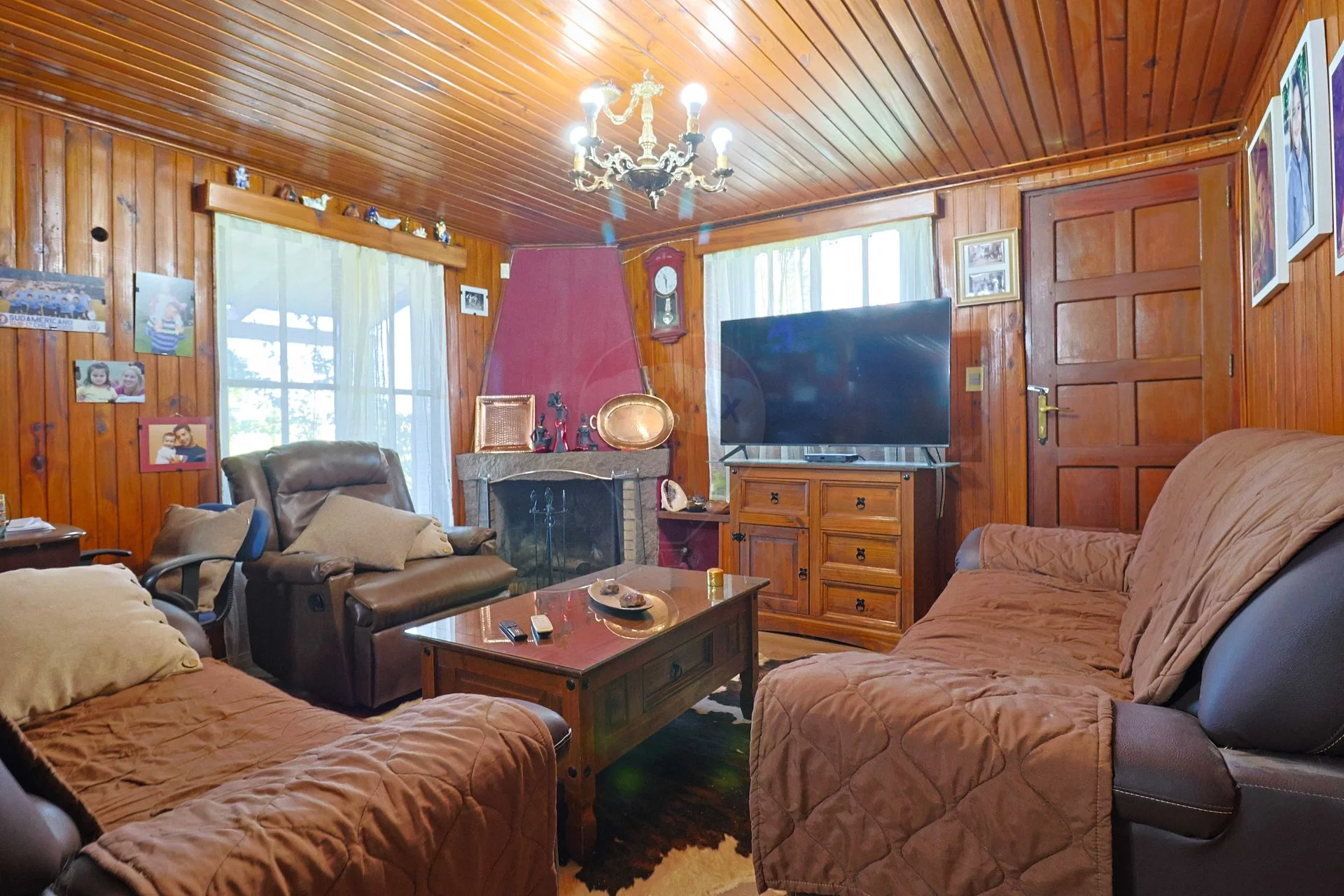 En el predio hay una casa principal de 150 m2 con living-comedor, estufa a leña y cocina integrada, otra sala que puede ser un estar o sala de juegos, 3 dormitorios y un baño.