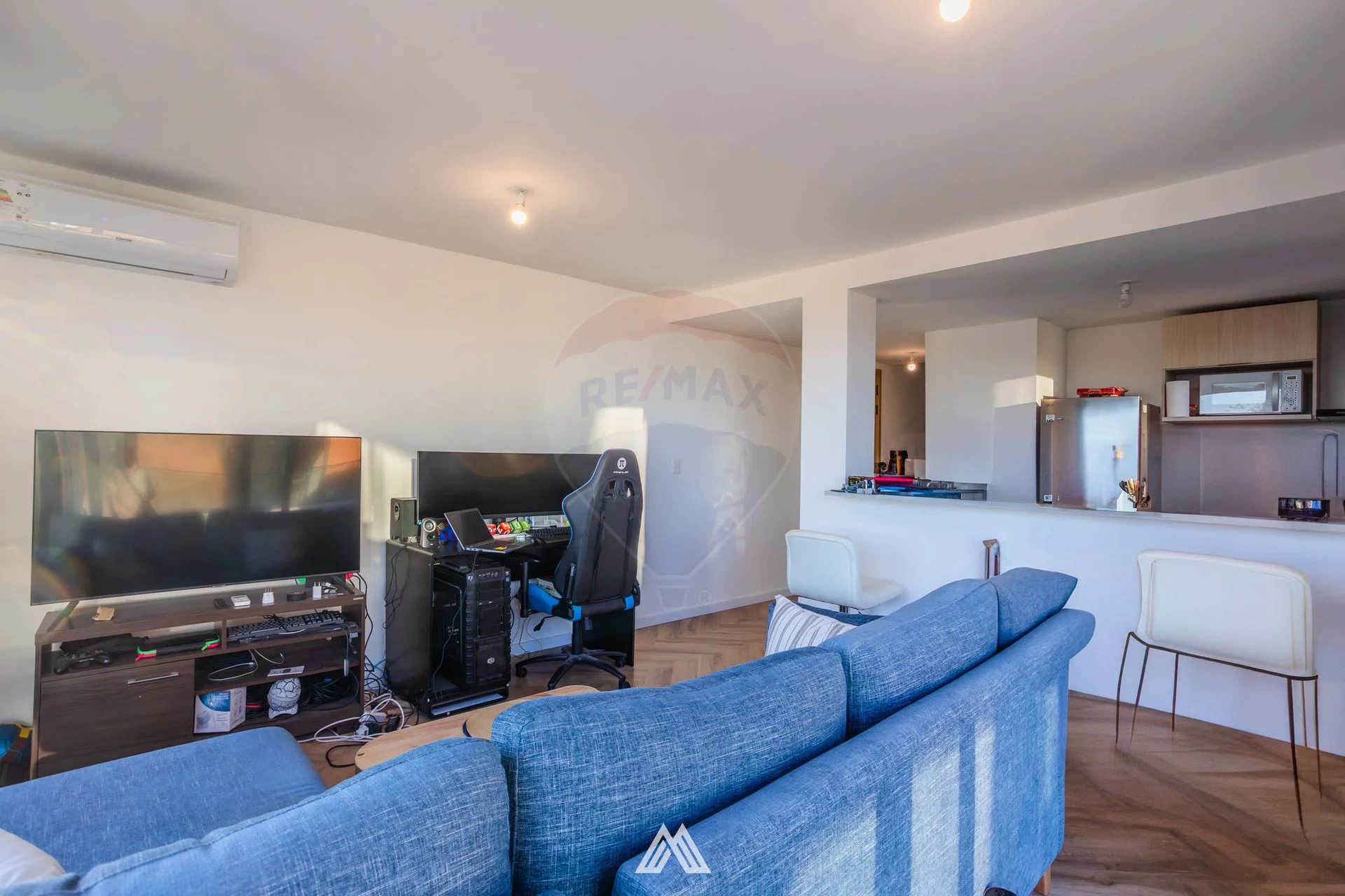 - Living comedor integrado a cocina con barra desayunador