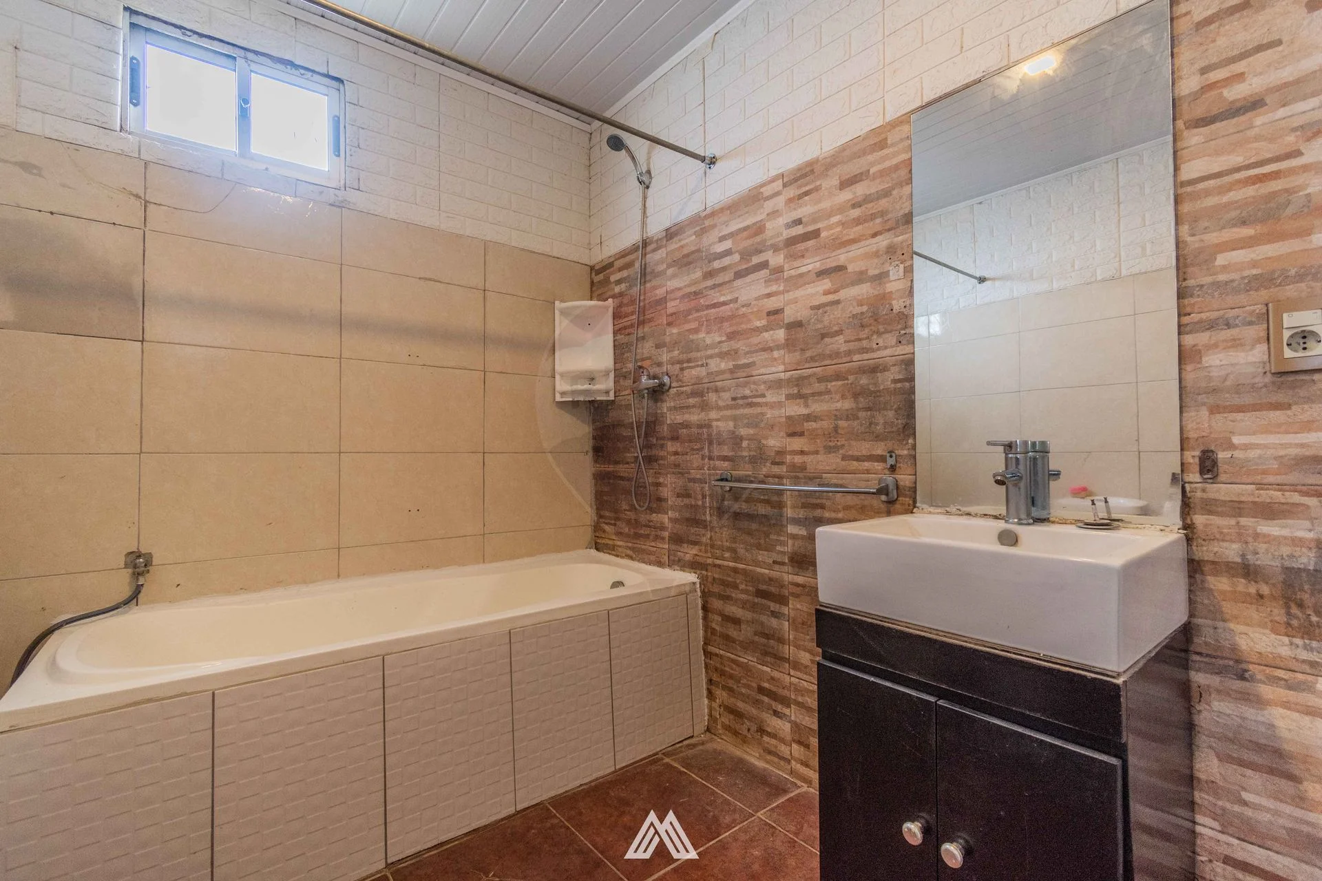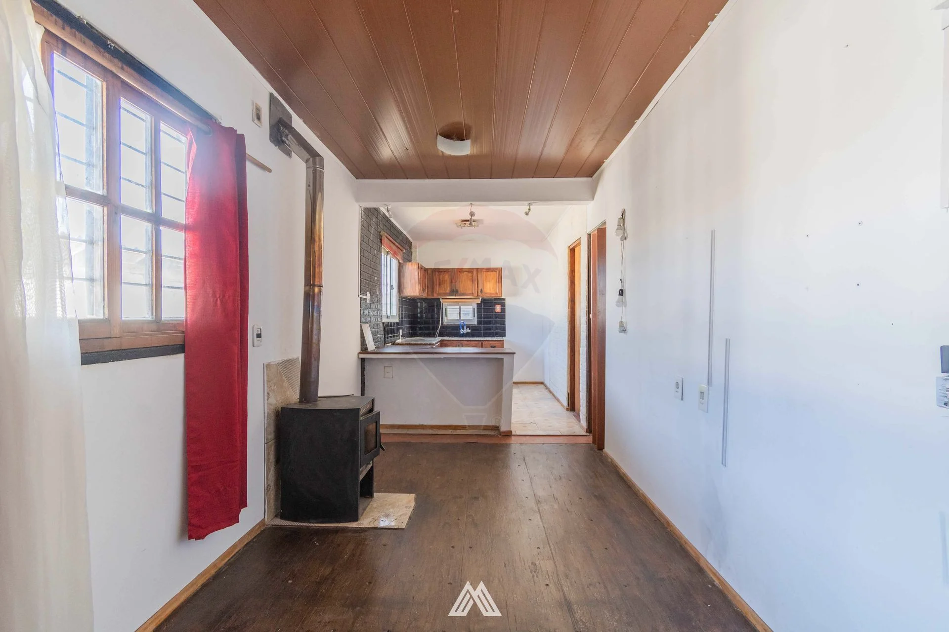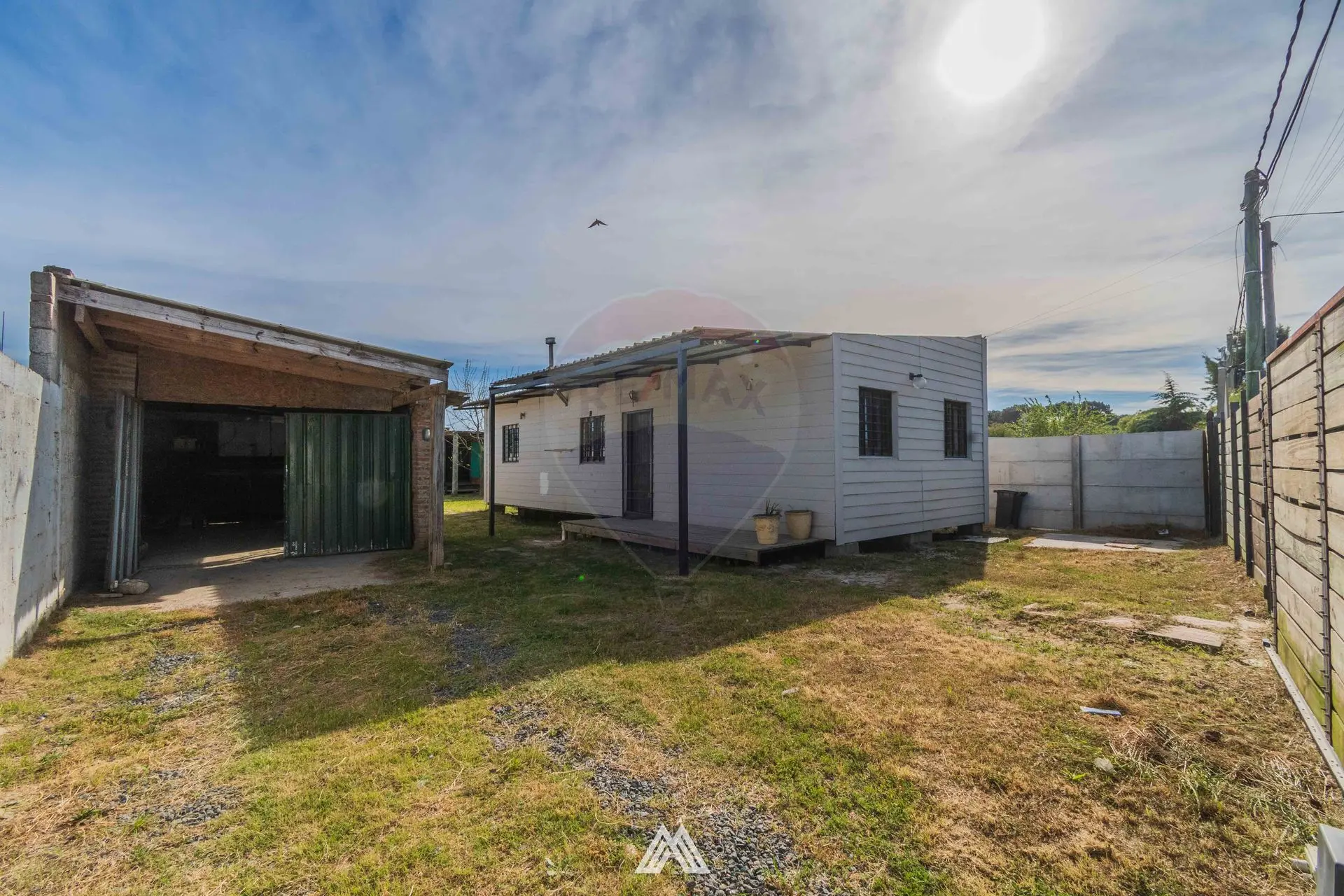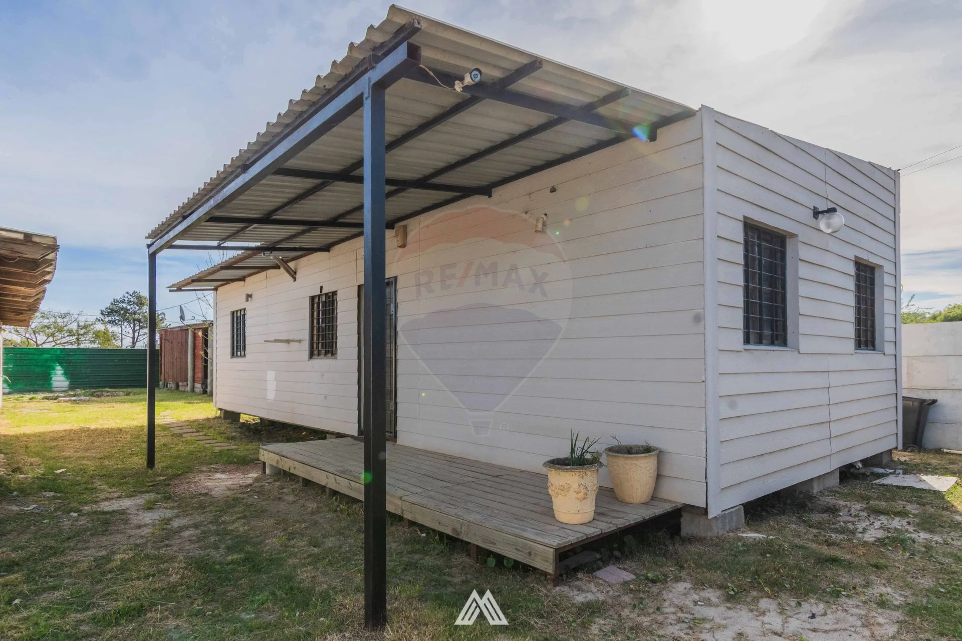 Al fondo cabaña de madera con cocina y baño. Le faltan terminaciones.