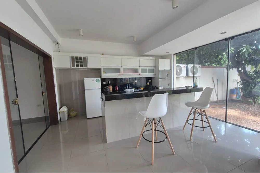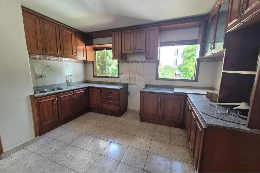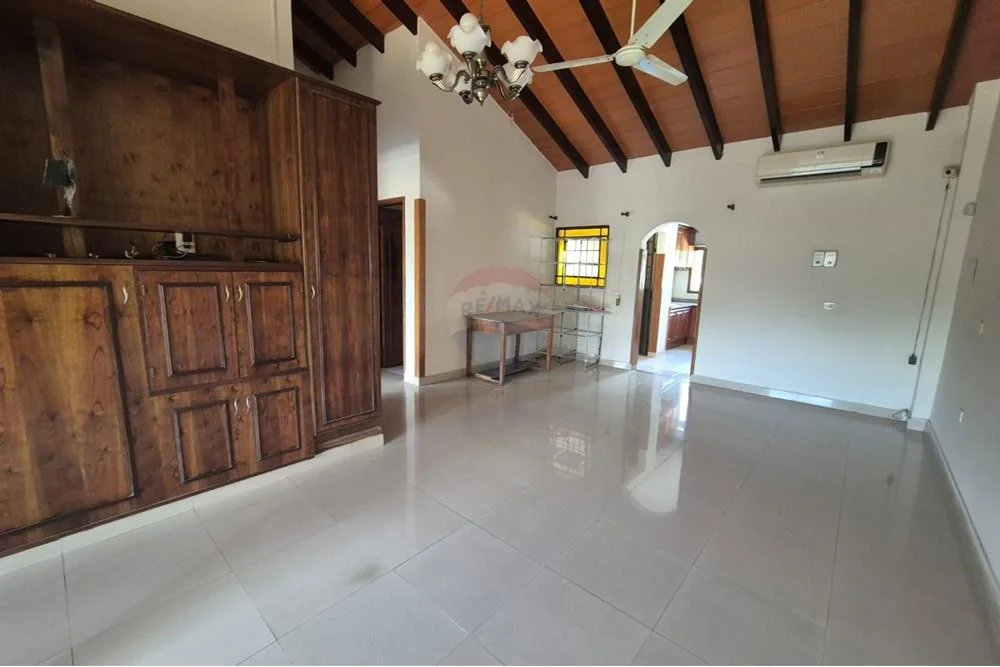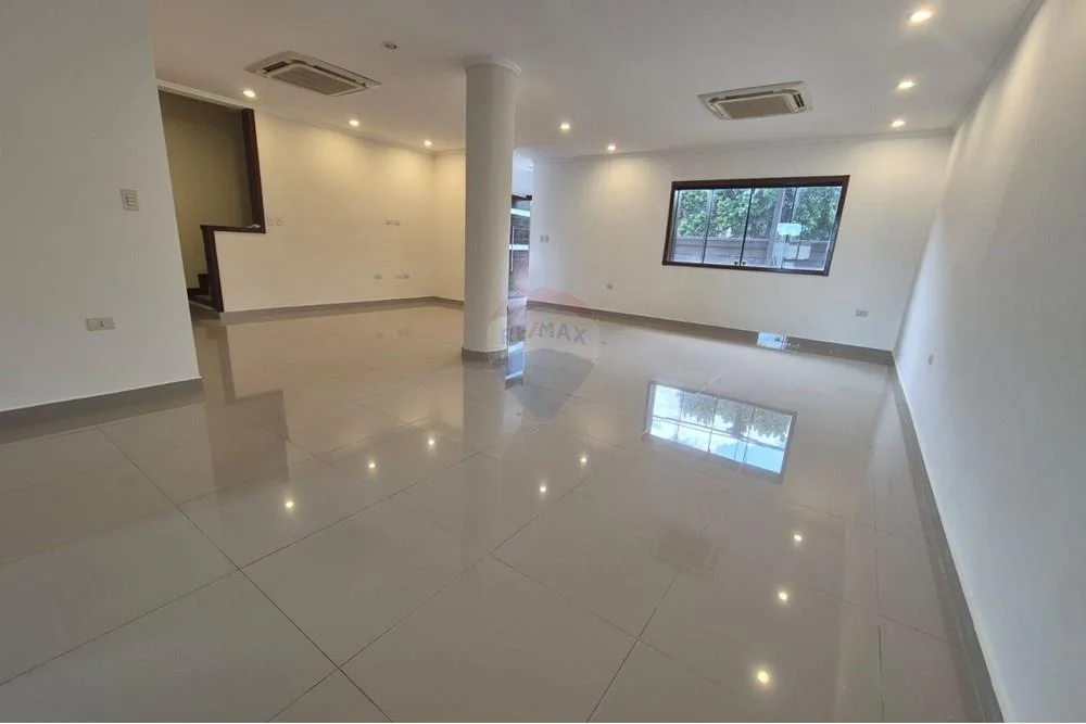 Casa en alquiler en San Lorenzo Barrio Espíritu Santo Ubicada sobre calle empedrada Capitolio, casi Pratt Gill, a solo una cuadra de la Avda. Pratt Gill. Zona residencial tranquila y con fácil acceso. Descripción de la propiedad: Casa de dos plantas con amplios y cómodos espacios: Planta baja: Amplia sala con aire acondicionado tipo cassette Baño social Cocina y comedor integrados con mesada de granito, anafe y muebles de cocina Una habitación con aire acondicionado, en suite con vestidor Planta alta: Sala de estar secundaria Dos habitaciones con aire acondicionado: una en suite con vestidor y otra con baño compartido Área de servicio con baño (opcional para habitación del personal doméstico) Cocina secundaria totalmente amoblada Exterior: Patio con piscina y sistema de regado Quincho con parrilla y baño social Amplio patio trasero Estacionamiento con capacidad para más de 10 vehículos Terreno de 720 m² con 365 m² construidos Ideal para familias grandes o para quienes buscan confort, espacio y ubicación estratégica. Alquiler con opción a compra