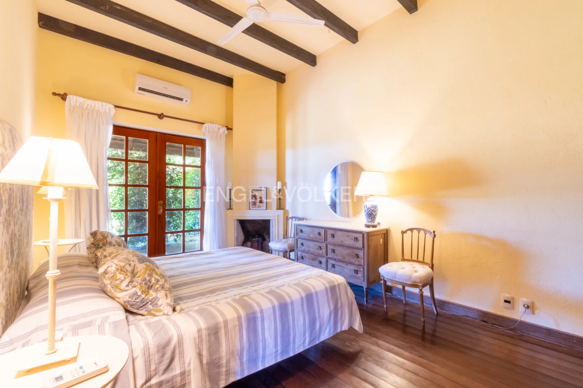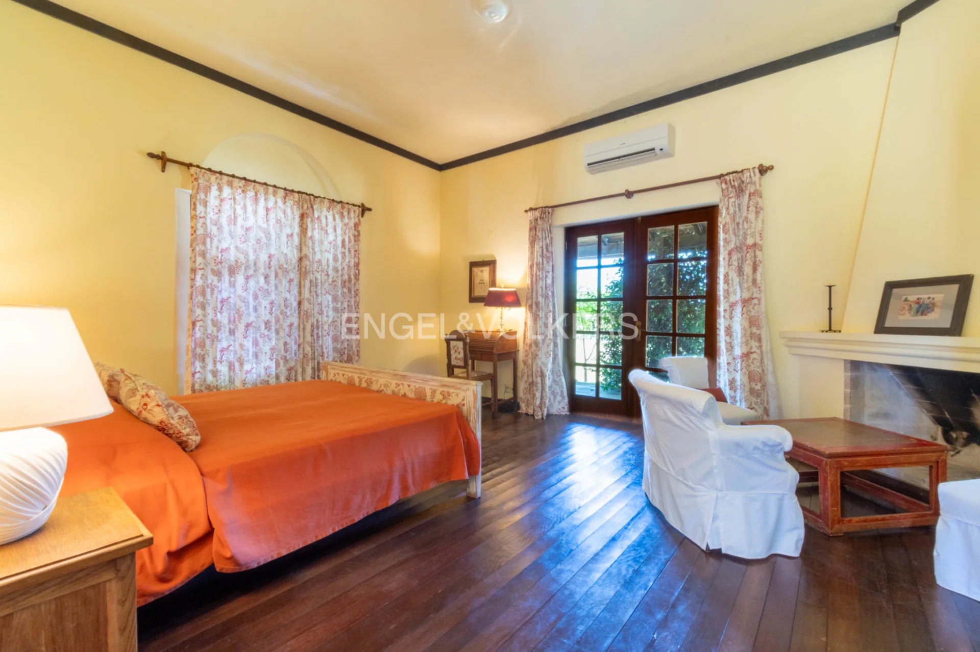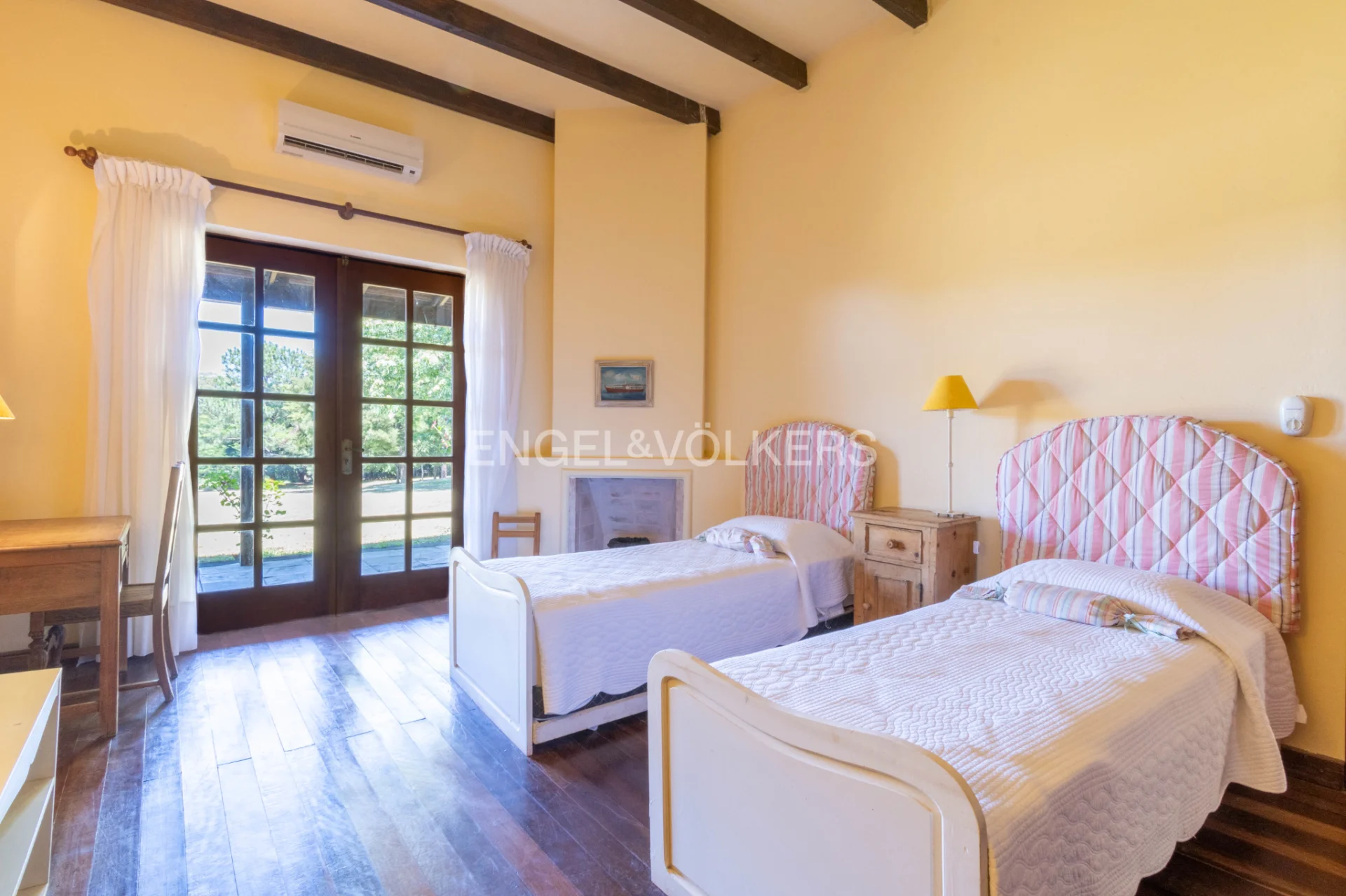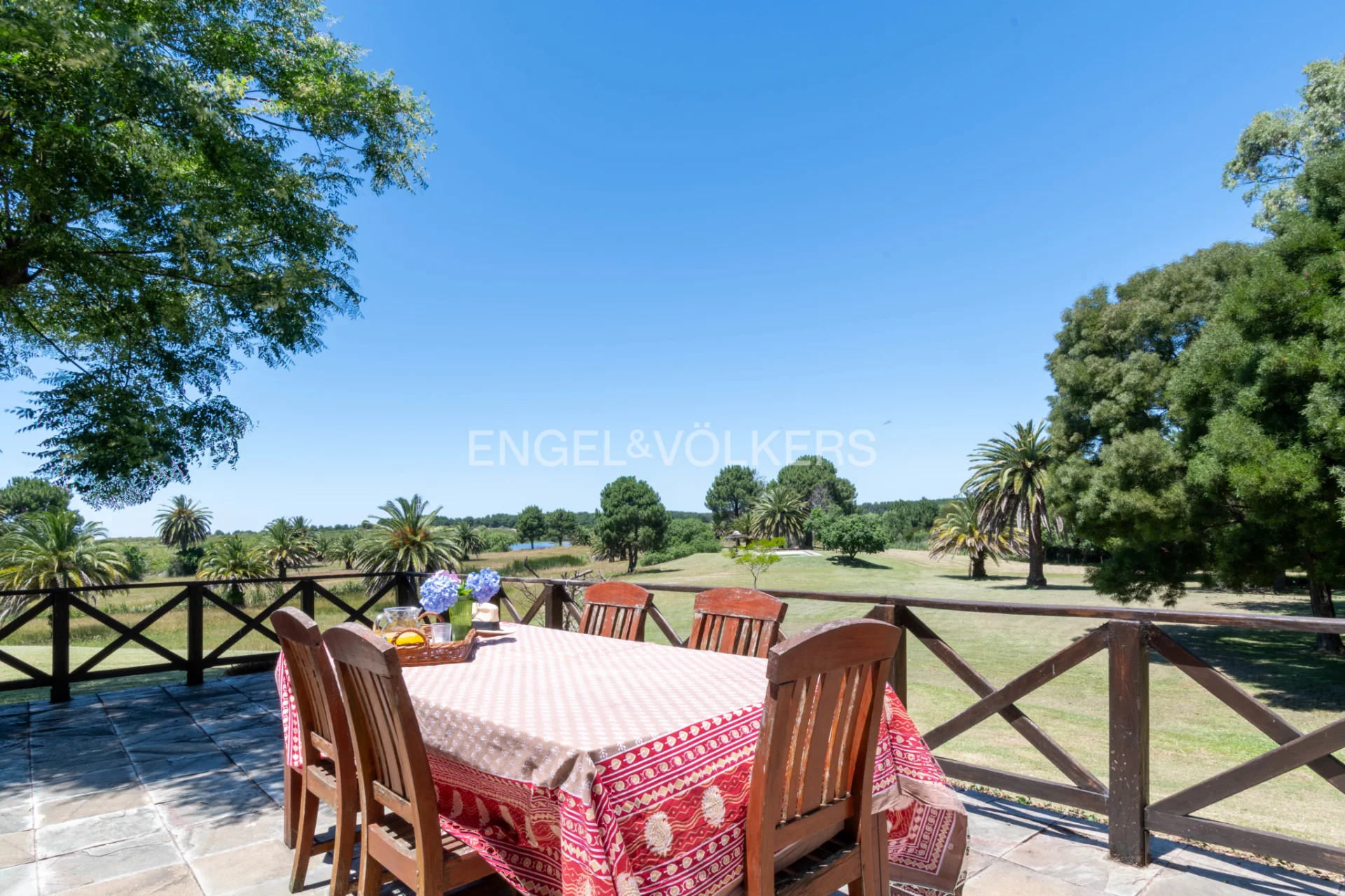 E&V presenta una magnífica chacra ubicada en la zona de Laguna de los Patos, a poca distancia de la playa “El Calabrés”, en un entorno de naturaleza autoctona y con vista a la laguna. Dentro de un parque de aproximadamente 20 has de superficie, con árboles y plantas de diversas especies, estamos bienvenidos de una grande casa estilo de campo de 345 m2 de superficie. Se agrega una galeria de 85 m2 dando espacios tranquilos para relajarse y aprovechar de la vista hasta la laguna y una terraza con barbacoa de 50 m2. Se desarrolla en una planta de una construccion solida y clasica. La combinacion de las piedras de los pisos con la madera cipresa de todas las aberturas, la excelente calidad de la carpintería en todos los detalles y el generoso ancho y alto de las habitaciones apoyan el estilo clásico de la casa. Todas las habitaciones tienen acceso a la galeria con vista a la naturaleza.