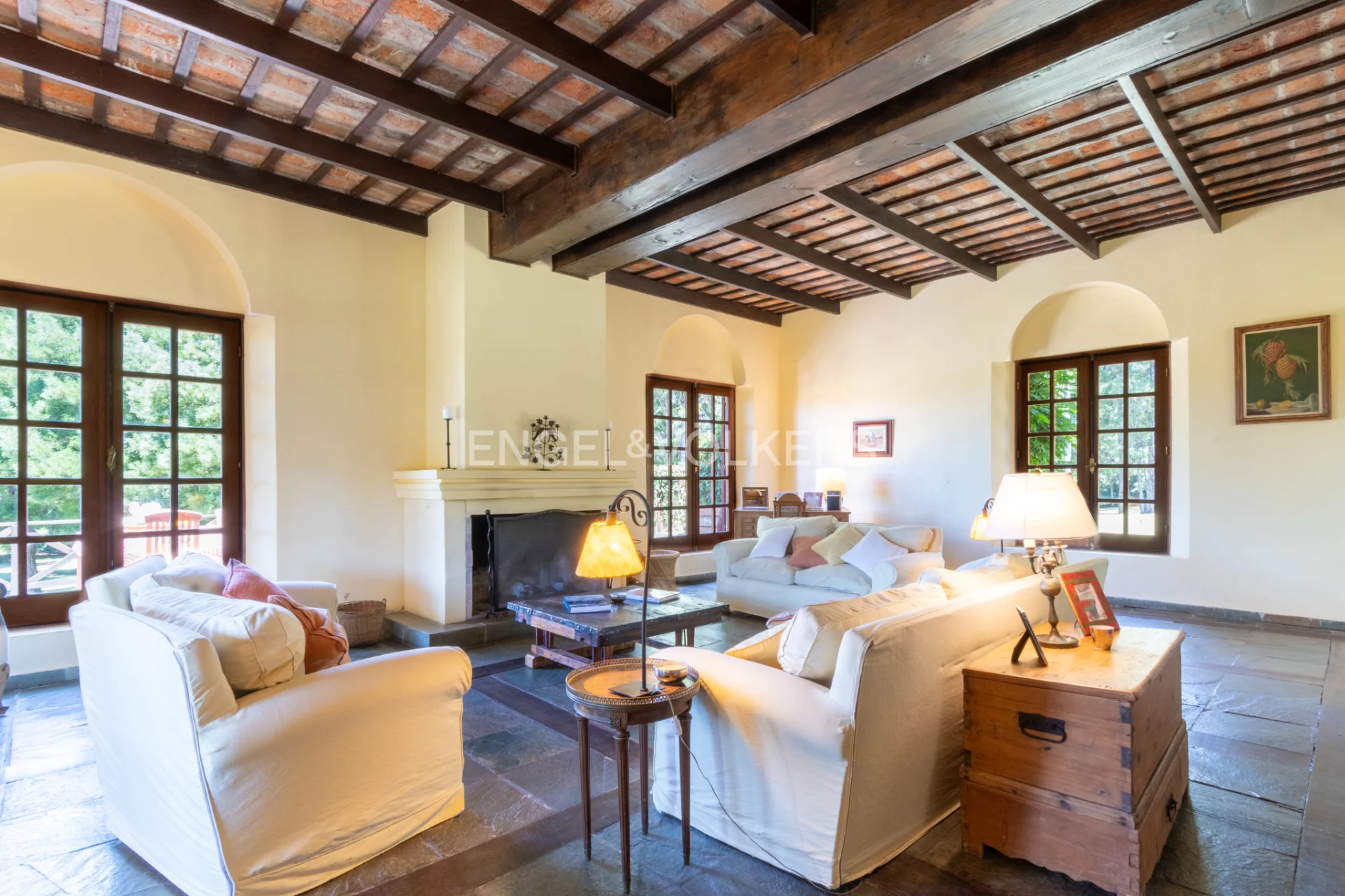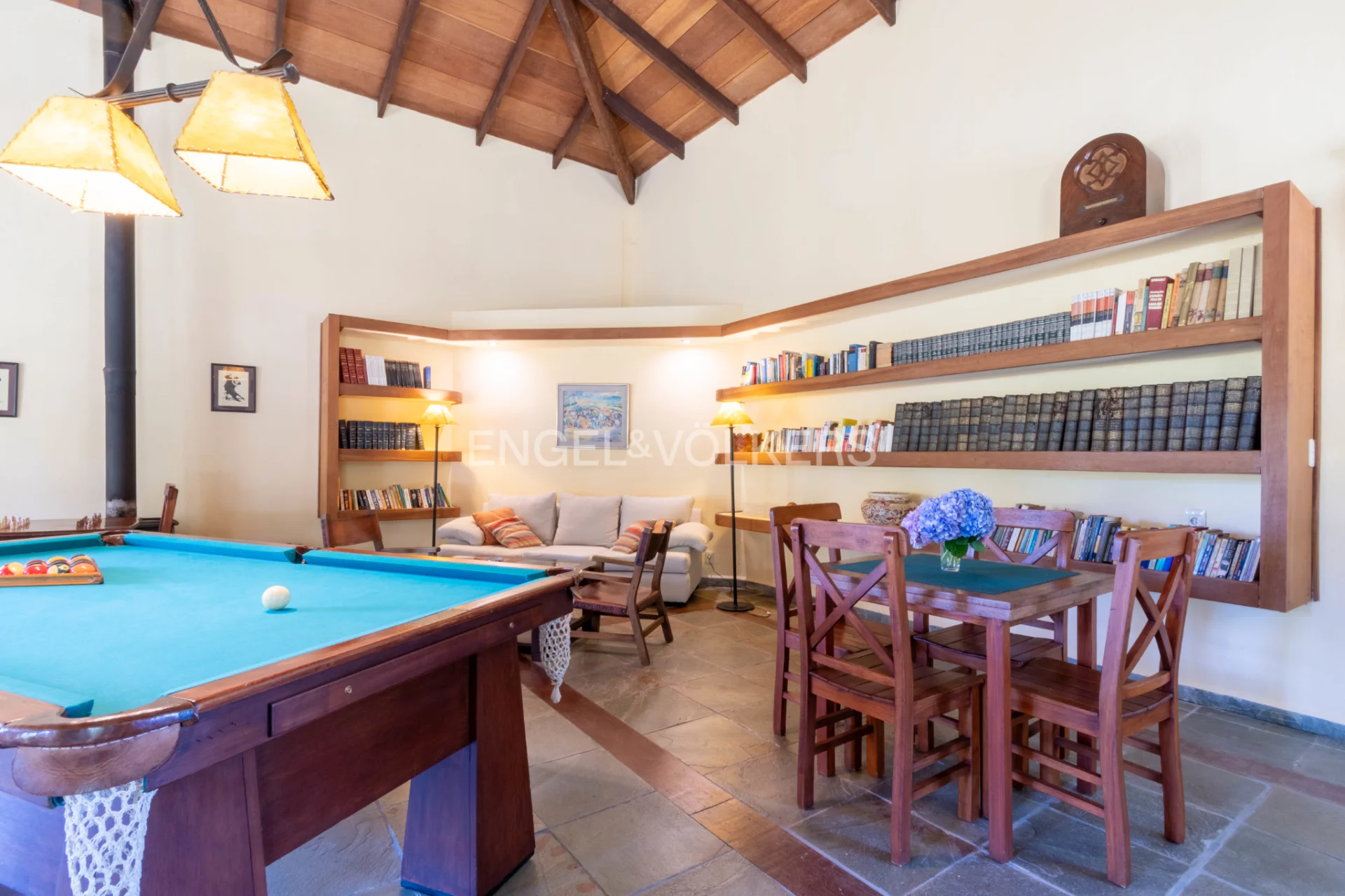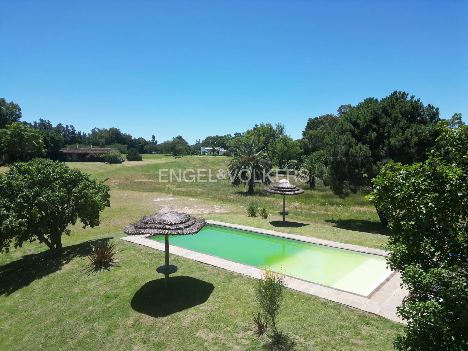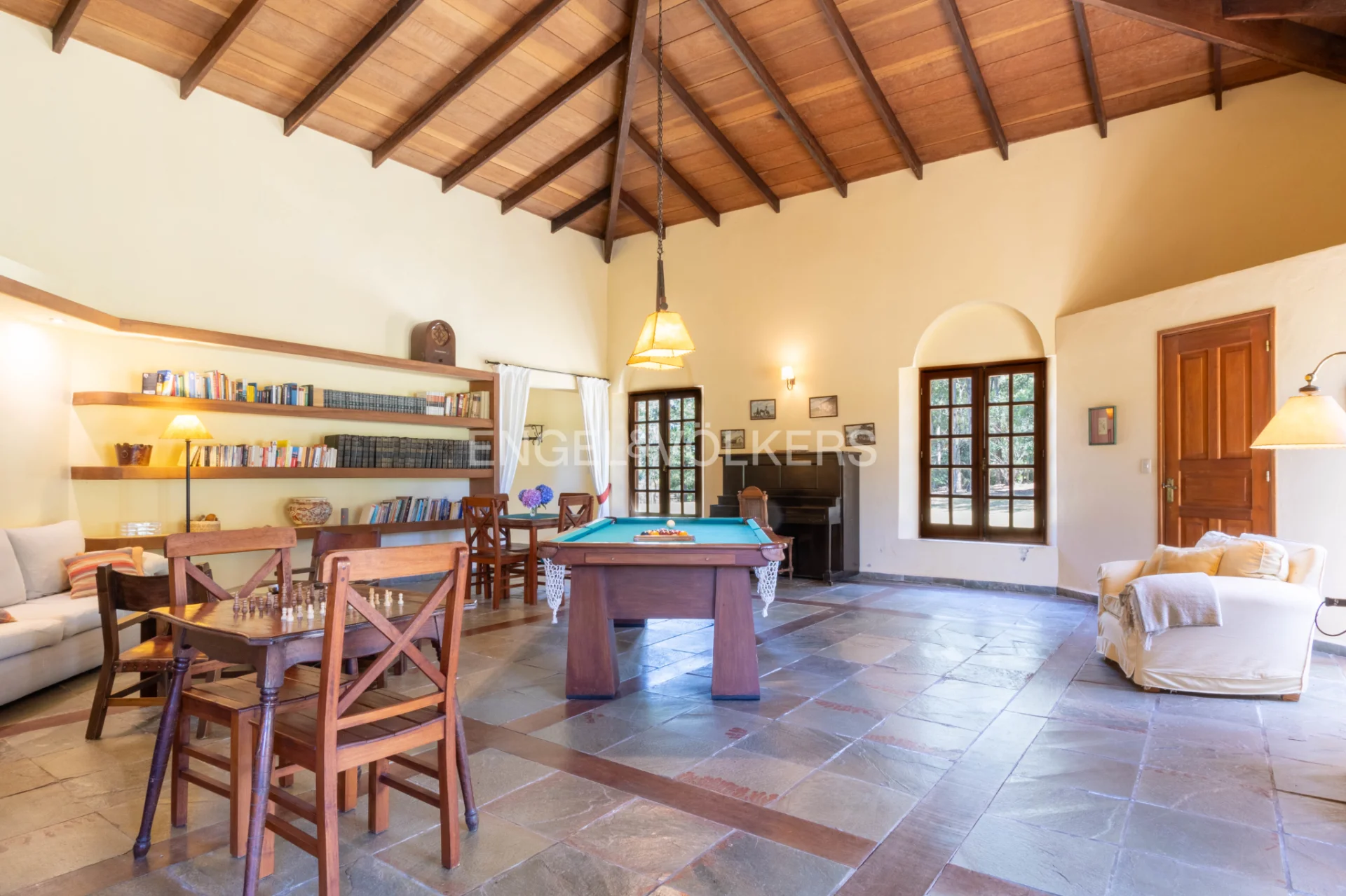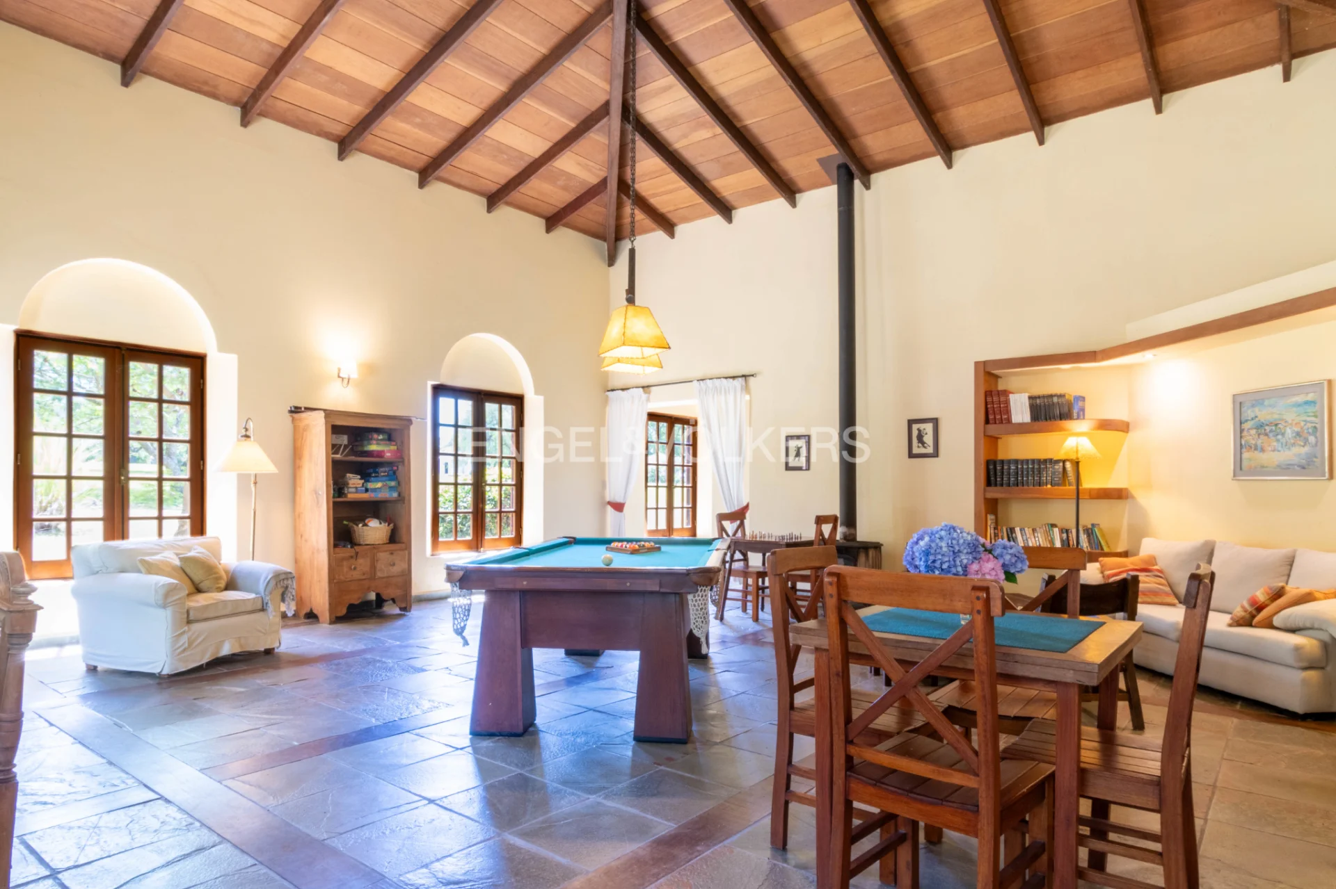 La casa nos recibe con una gran living y comedor combinados con estufa de leña; la cocina con muebles prácticos y conectada a una gran despensa. La conexión entre las dos alas de la casa es una gran sala de estar que ofrece diversas actividades de entretenimiento: mesa de billar, ajedrez, juegos de cartas y sillones ideales para leer. Continuamos a la parte privada de la casa que consta de 4 dormitorios de los cuales 2 estan en suite con baños completes. El segundo y tercer dormitorio comparten un baño con ducha. Cada dormitorio con placares grandes. En total hay plazas para dormir para 8 personas. El dormitorio principal cuenta con su propia estufa de leña. La calefaccion es por aire acondicionado distrubuido en todas la habitaciones, aveces son varios en un cuarto. Una piscina de 12 x 6 m completa la vida de campo. La propiedad esta guardada y mantenida de un casero todo el año que vive en el predio en una casa separada.