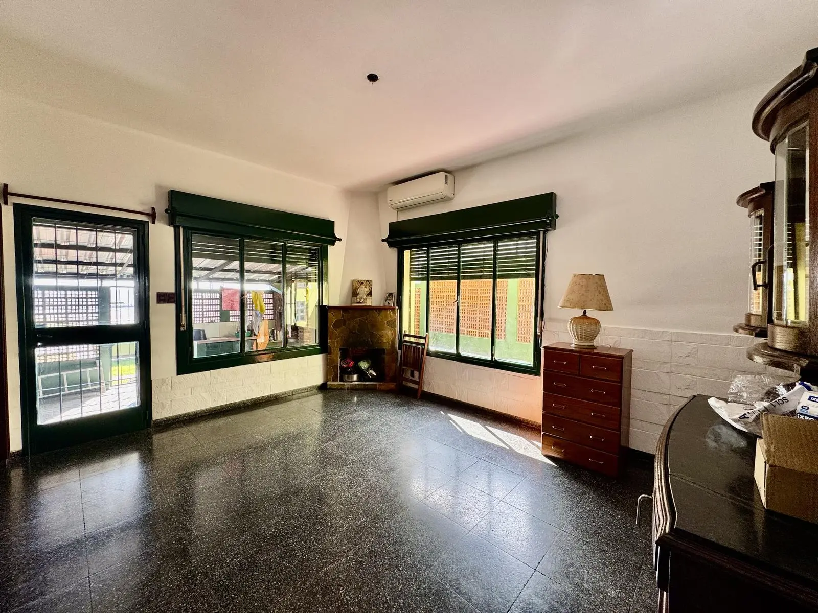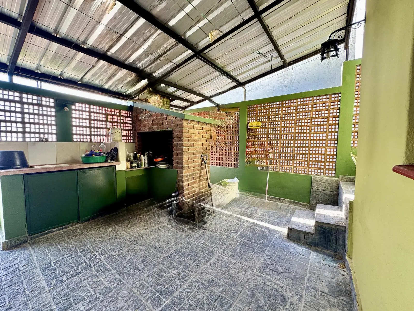 Terraza techada con parrillero y galpón, perfecta para reuniones y almacenamiento.