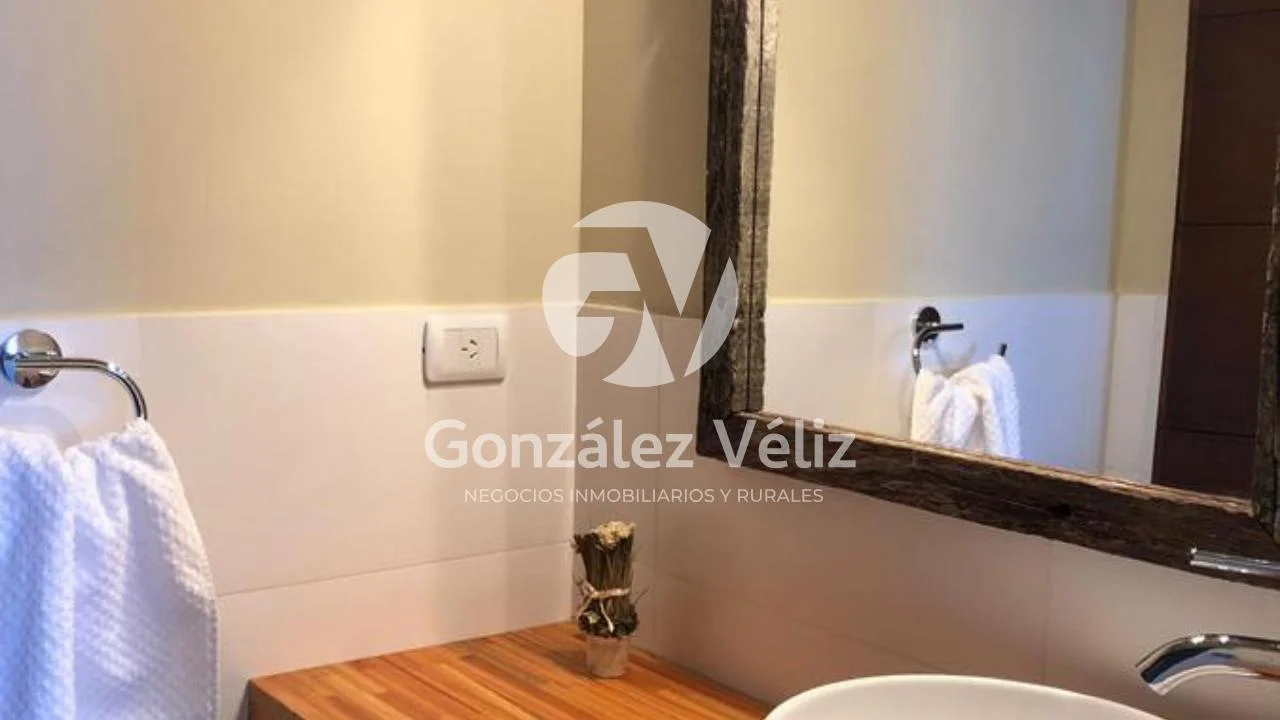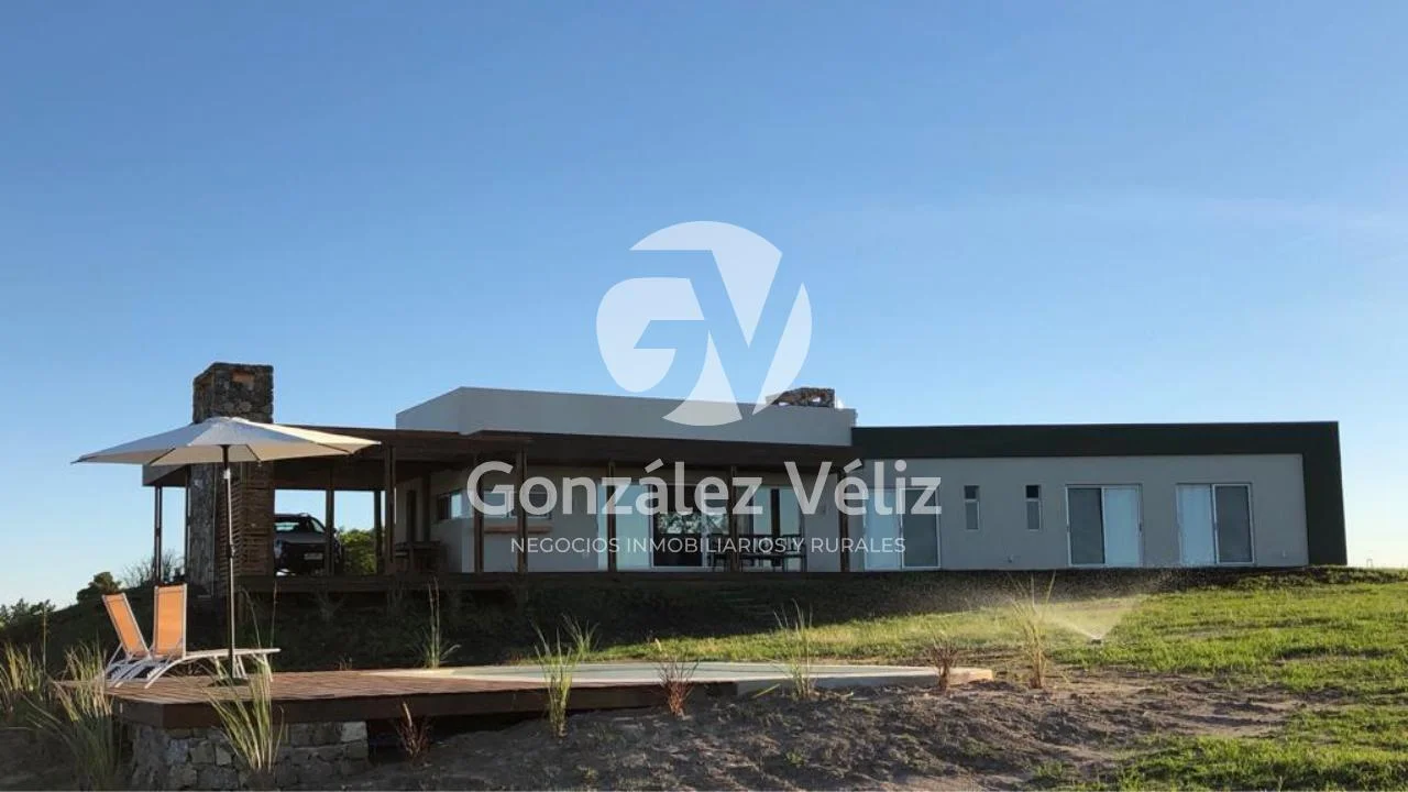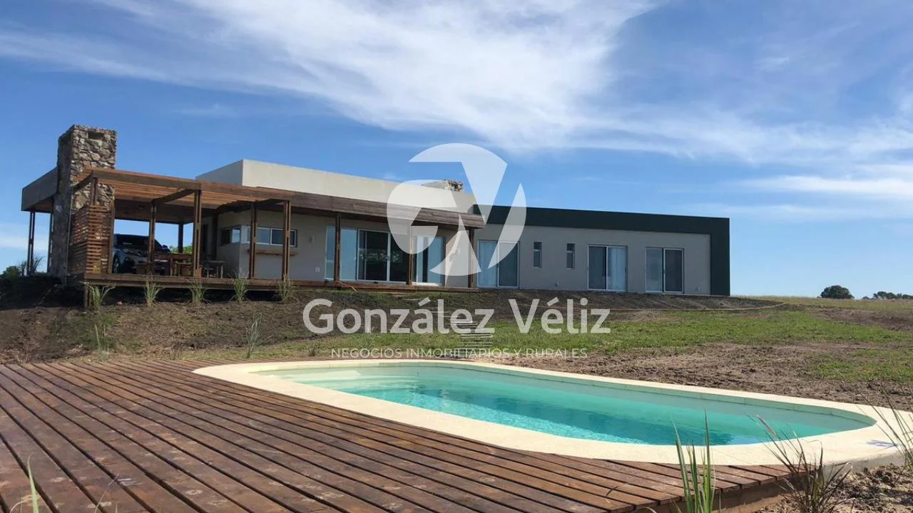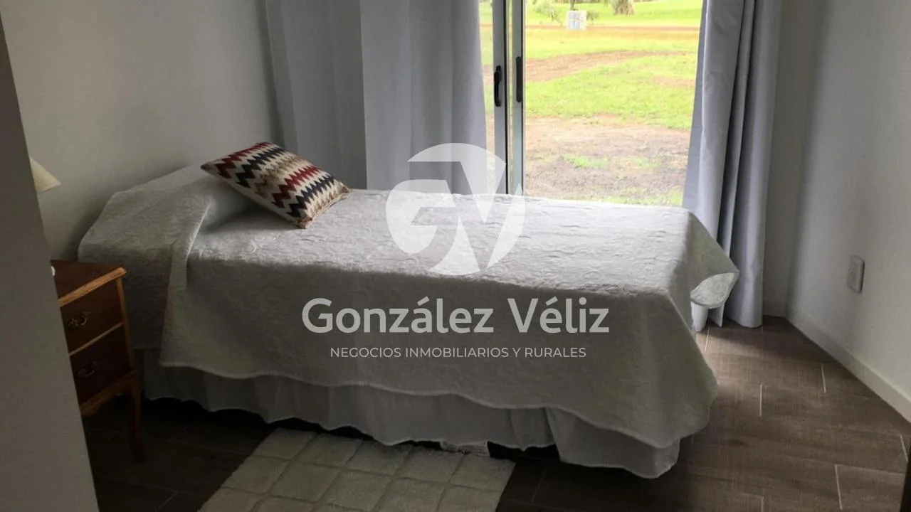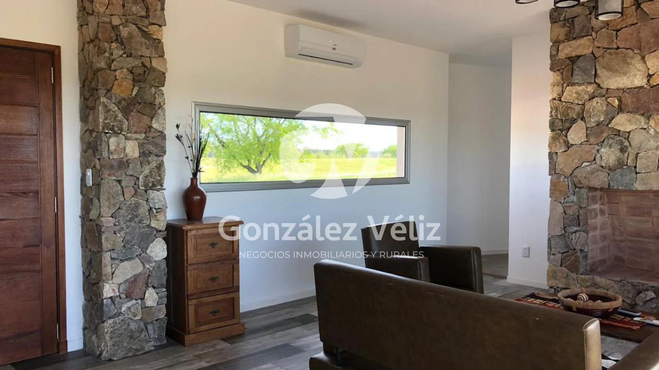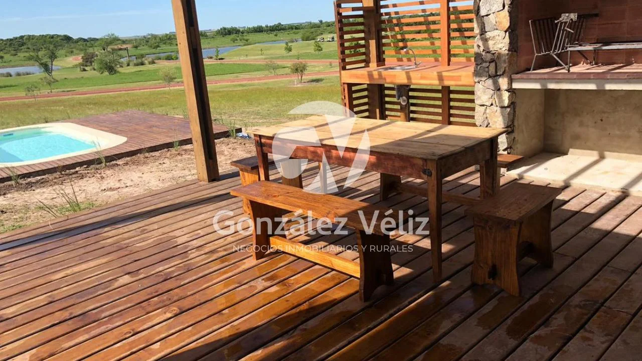 3 dormitorios con baño en suite, living comedor con cocina integrada, baño social, estufa leña, cochera para dos autos, parrillero, piscina, hermosa vista al campo de golf, 4100mts de terreno.