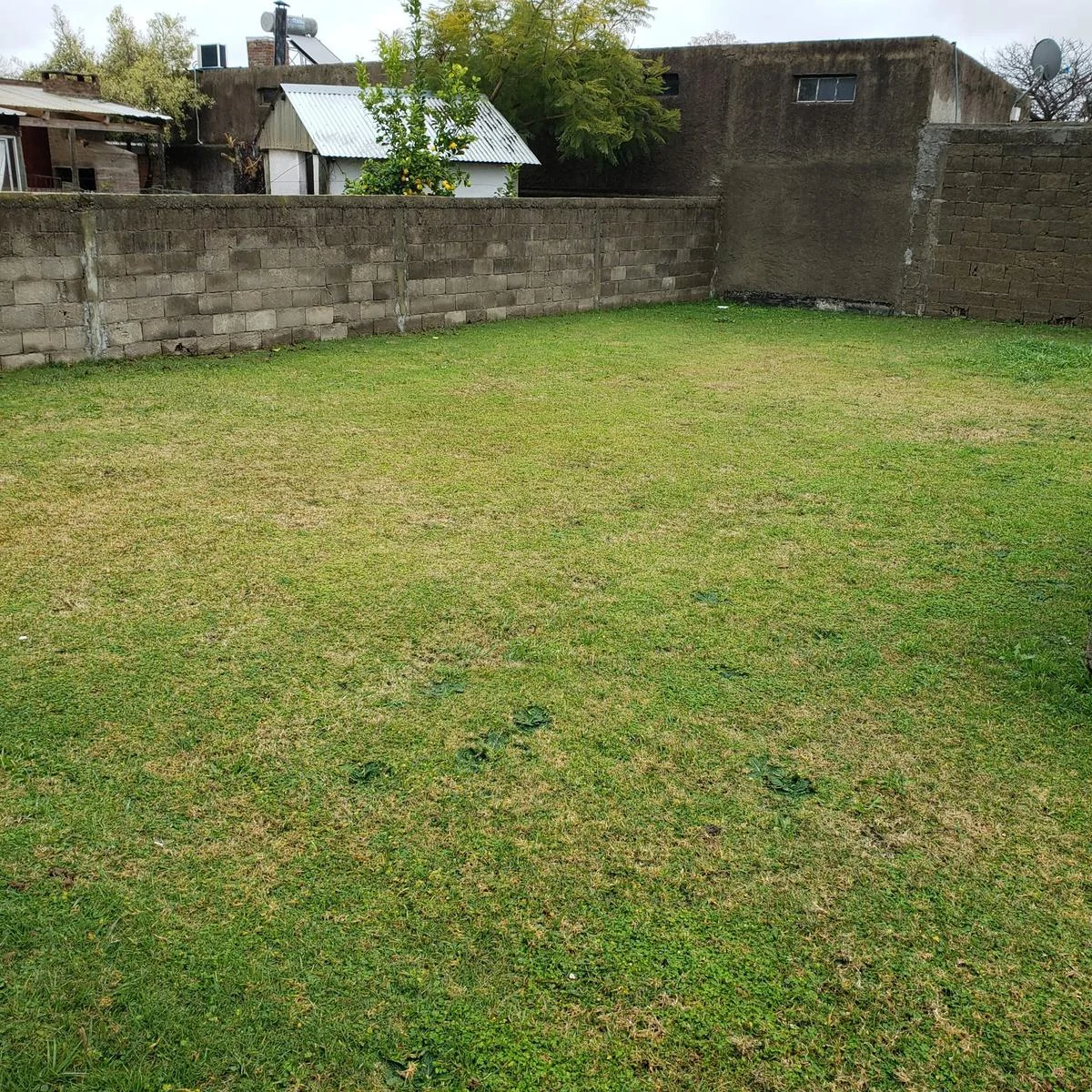 - amplio frente cercado, con entrada para vehículos y amplio fondo con muros.