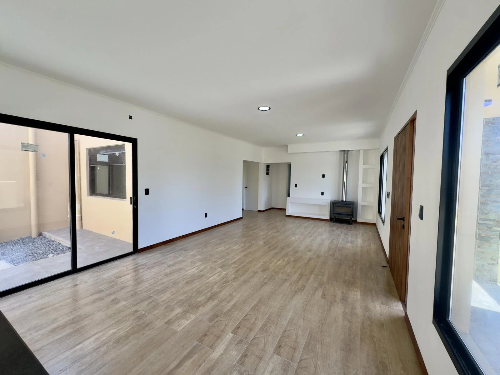 La casa cuenta con 3 dormitorios amplios, una gran sala de living-comedor equipada con calefactor a leña y ventanales que permiten un excelente ingreso de luz.