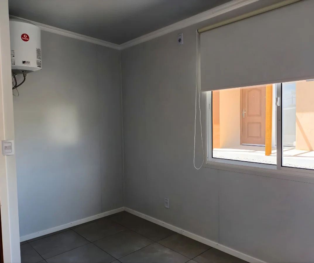 1 dormitorio luminoso con persiana y piso de porcelanato