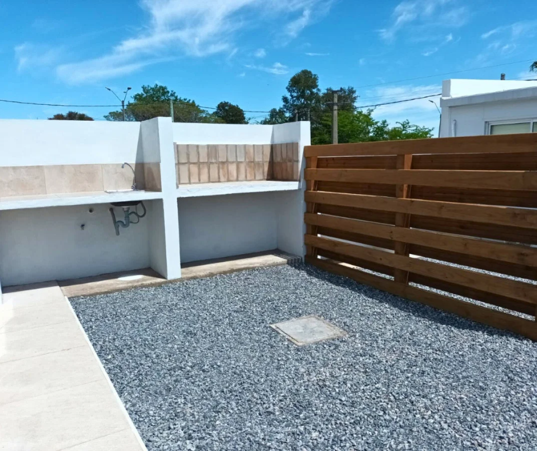 Patio privado con parrillero y mesada exterior con pileta, cercado en madera