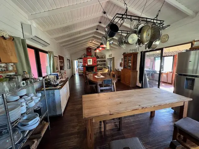 baños en total. Tiene cocina a leña y estufa en el ambiente principal, el living-comedor-cocina. Las
