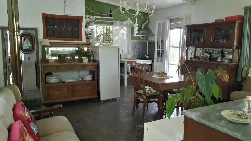 La casa es de sencilla pero sólida construccIón, con lindas aberturas de época, ubicada en la parte más elevada del terreno con muy buenas vistas a la campiña, y cuenta con un sólo ambiente con pìso de cemento alisado, cocina integrada y baño. Hermosa galería cerrada con parrillero y jardín de invierno que se transforma en una extensión de la casa.
