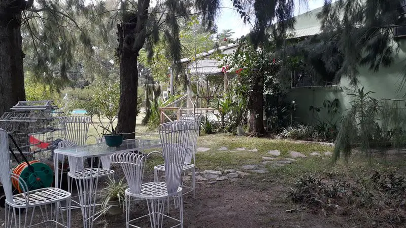 Muy lindo parquización con variedad de árboles y plantas y frutales, y una hermosa huerta además de contar con tanque australiano de 12metros utilizado como piscinacon deck de madera, y ducha.